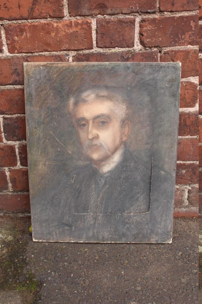 A LATE 19TH / EARLY 20TH CENTURY HEAD AND SHOULDER PORTRAIT STUDY OF A GENTLEMAN WITH A MOUSTACHE, unsigned, oil on canvas, unframed, 53 x 43 cm