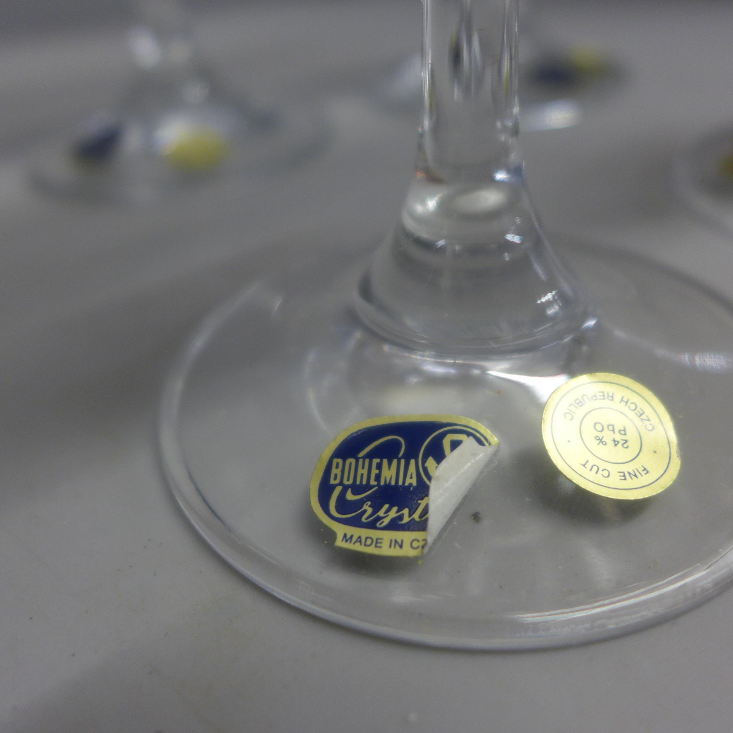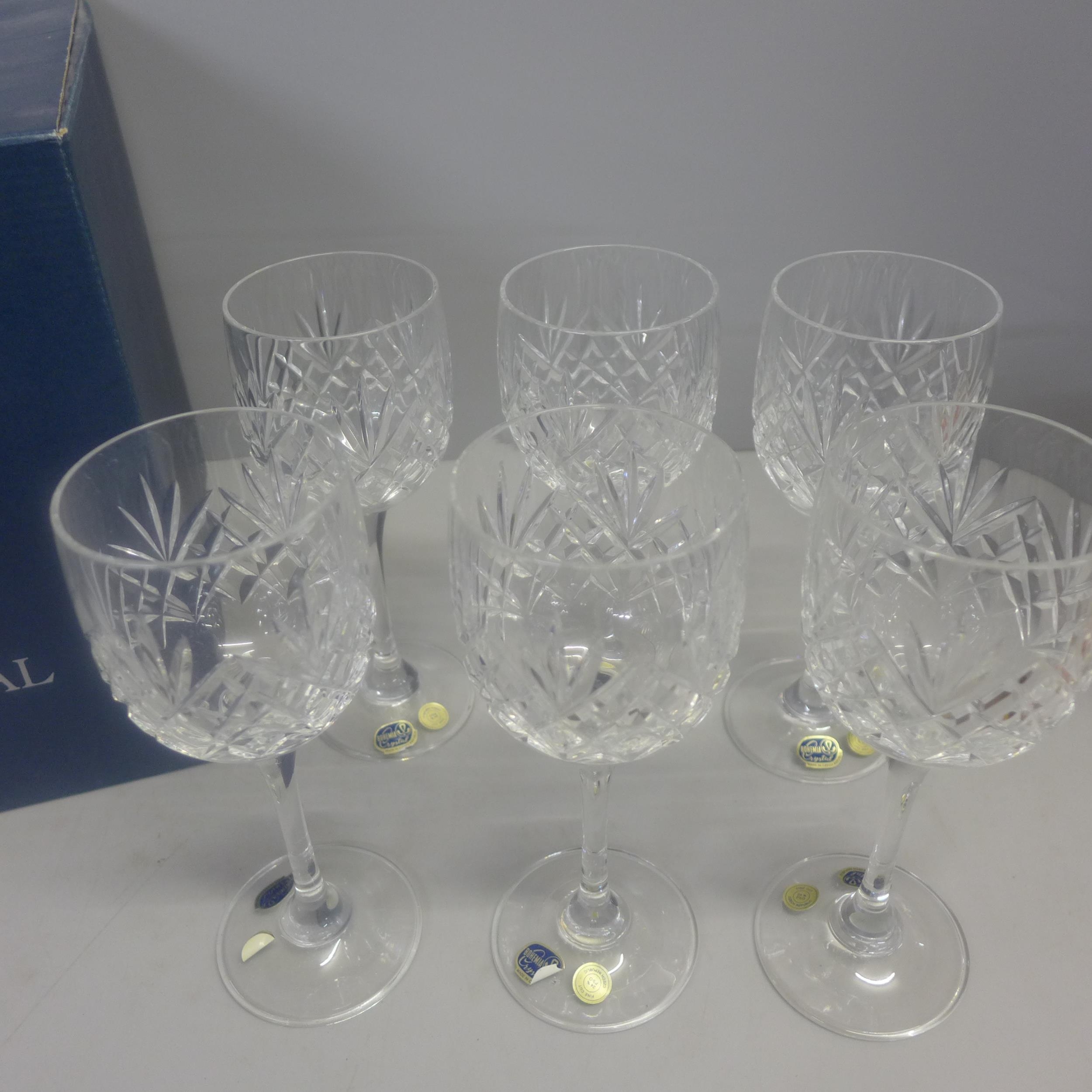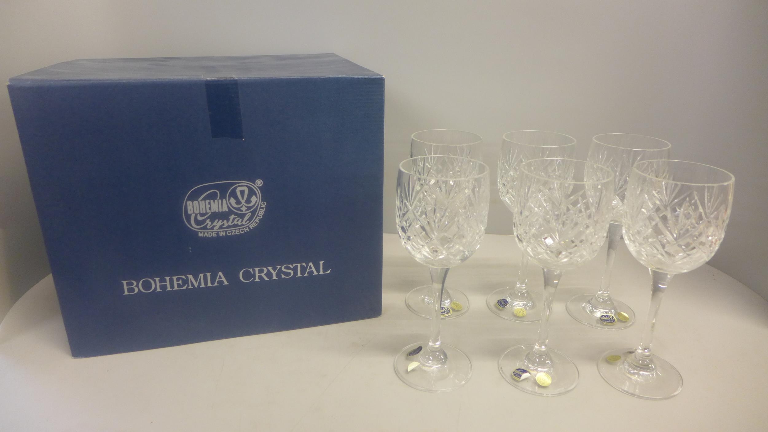 A set of six Bohemia Crystal wine glasses, boxed