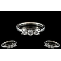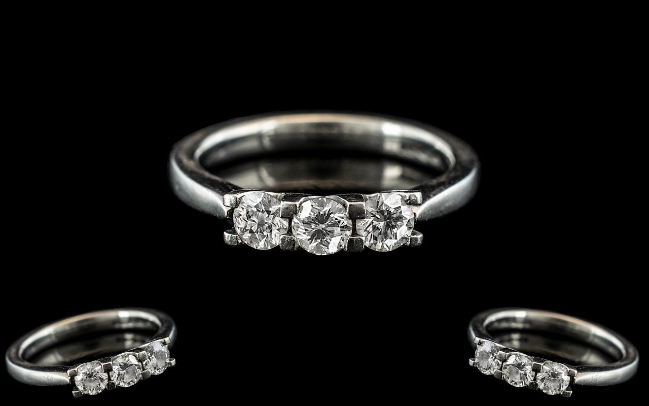 Ladies Superb 18ct White Gold 3 Stone Diamond Ring. The Round Brilliant Cut Diamonds of Top Colour / Clarity. Est F-G Colour, VSI Clarity, Est Diamond Weight 0.45 pts. Ring Size K. The Setting and Shank As New Condition.
