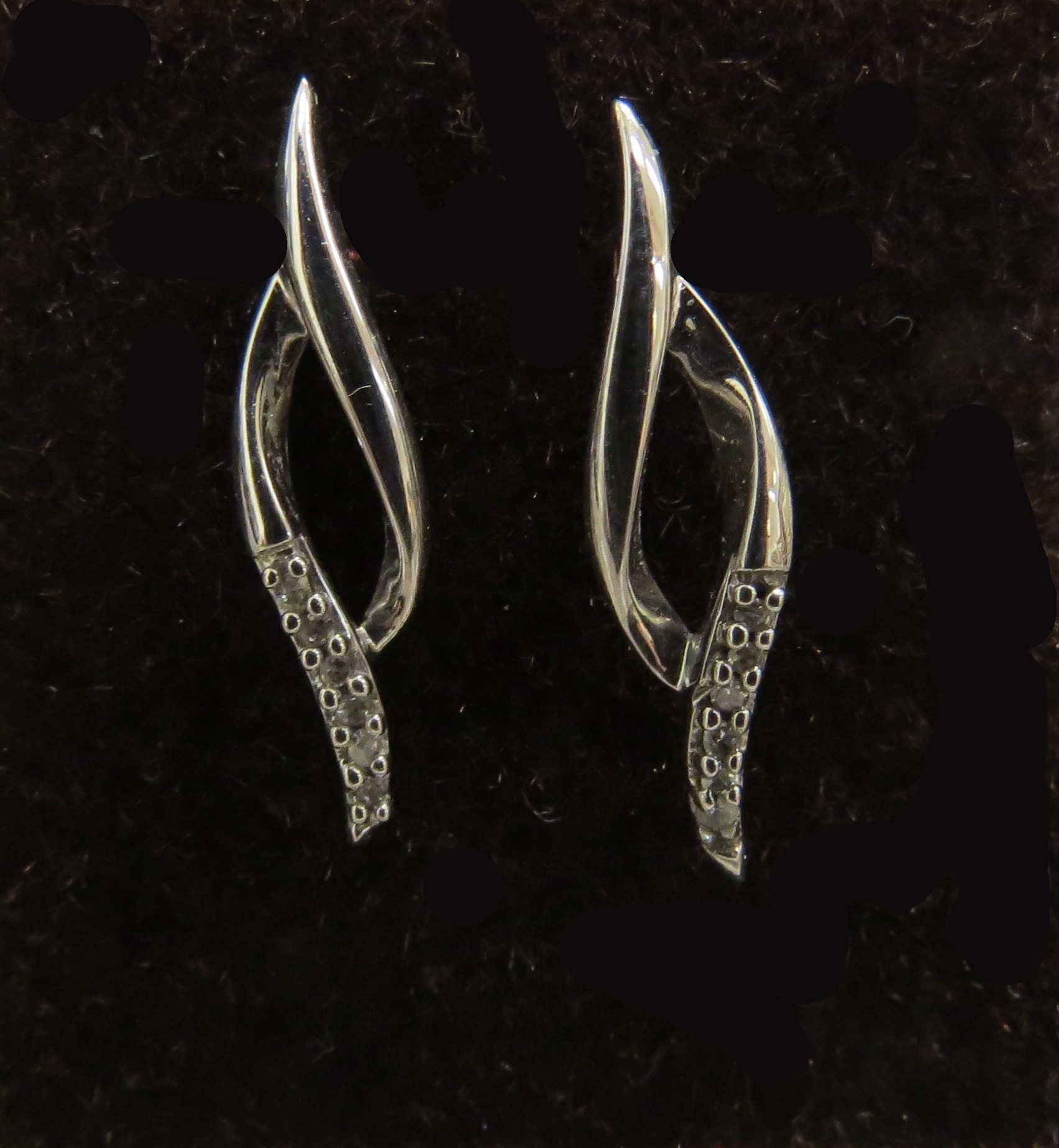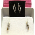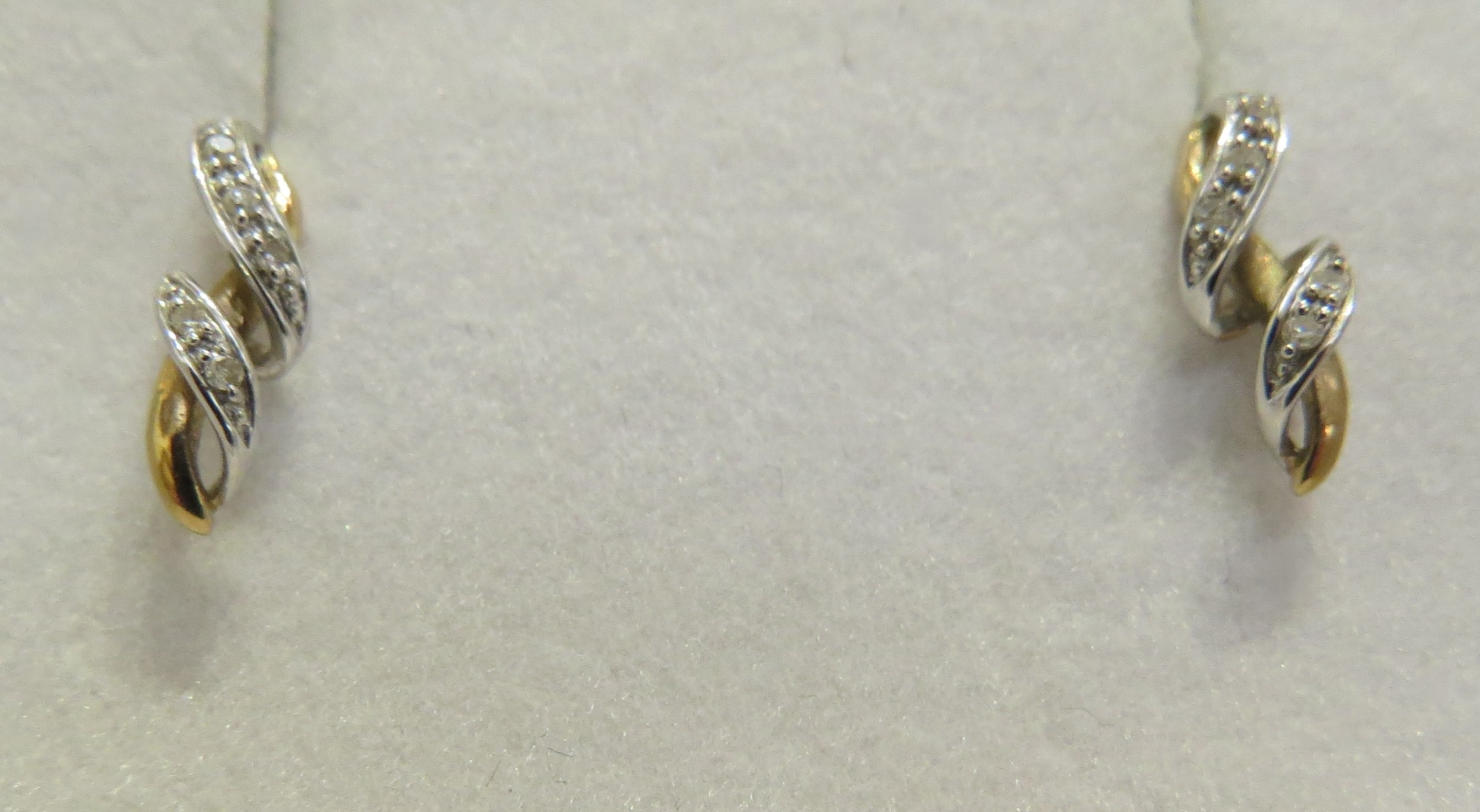 A pair of 9ct white gold brilliant cut fancy curve diamond earrings and a pair of 9ct yellow and white gold diamond earrings, 2.1g (two pairs)