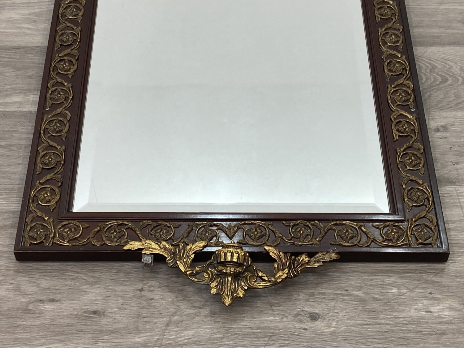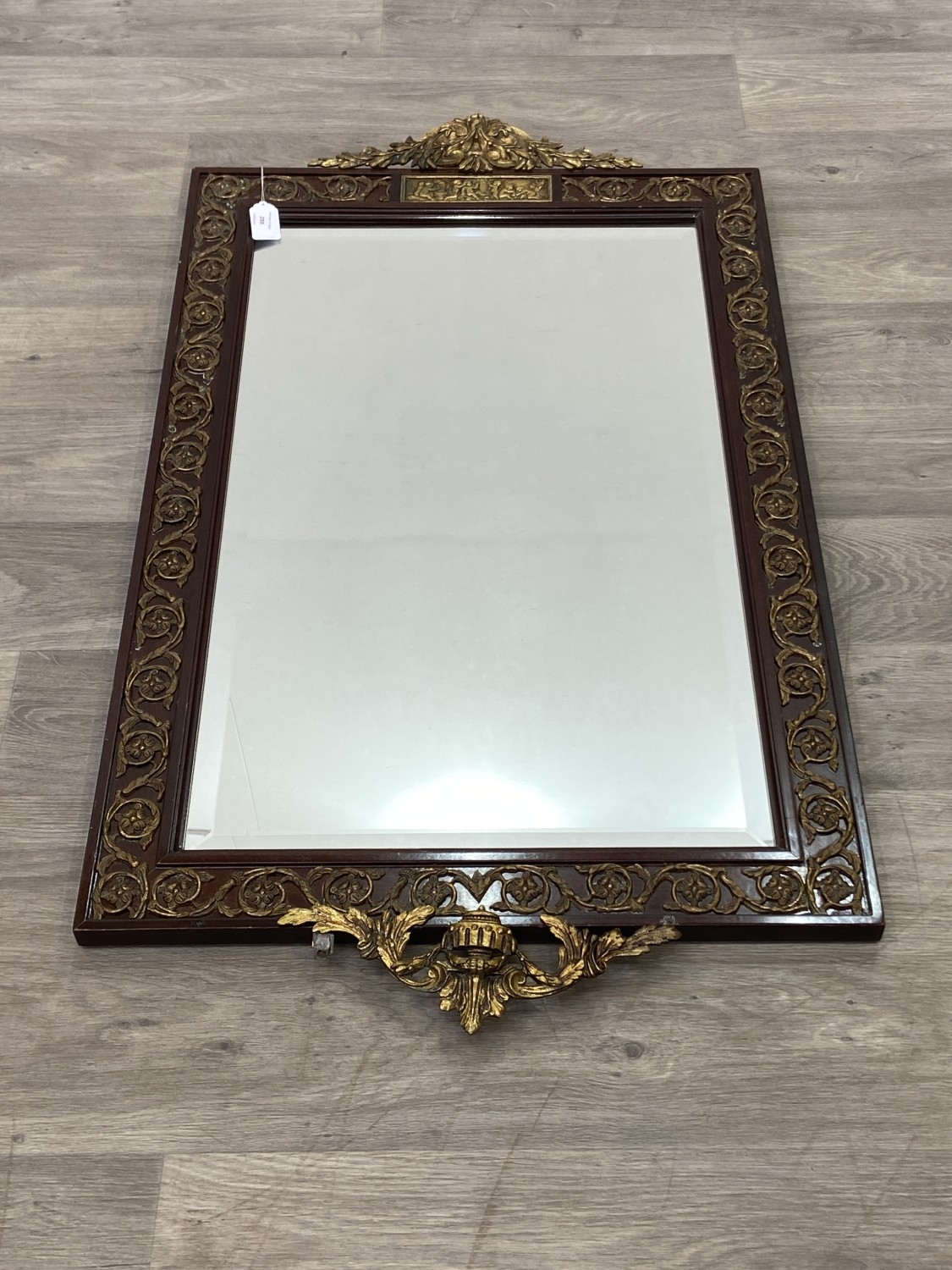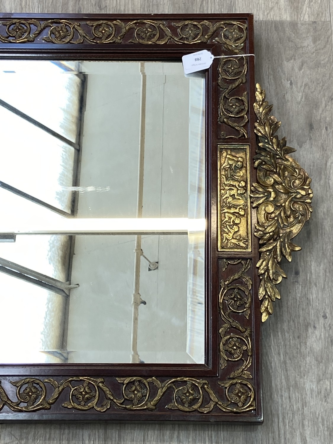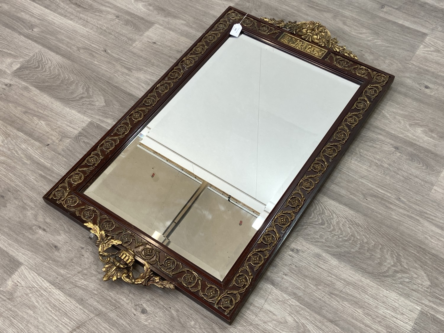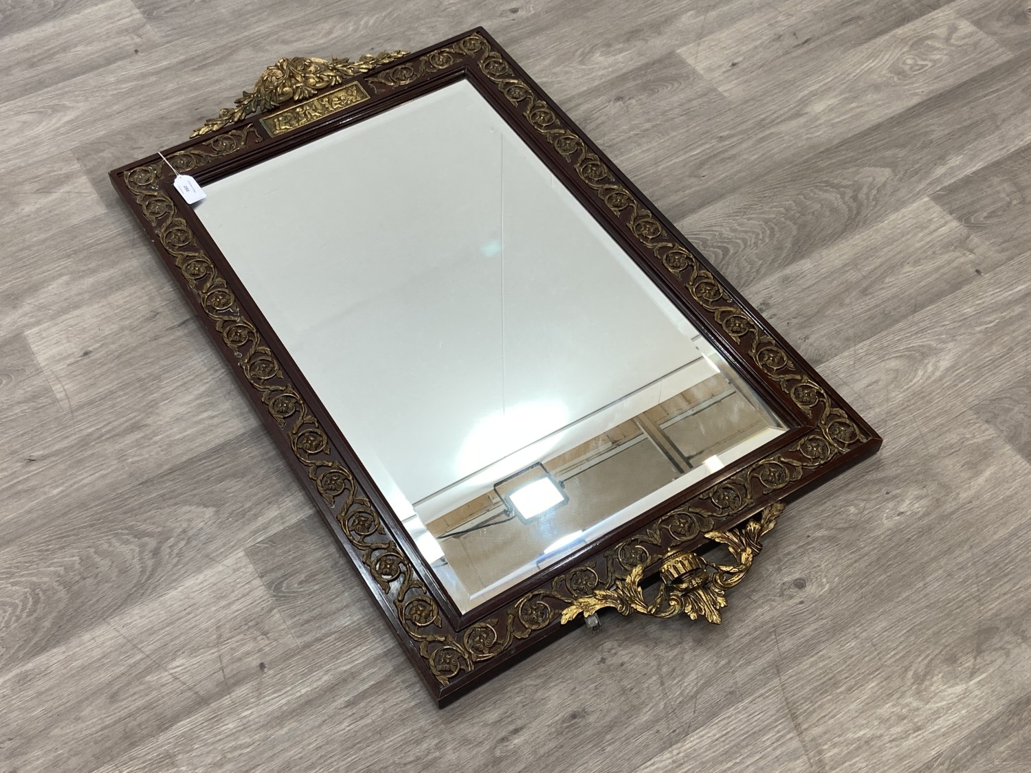 A Georgian style mahogany and parcel gilt framed bevelled edge wall mirror - approx. 100cm high x 58cm wide