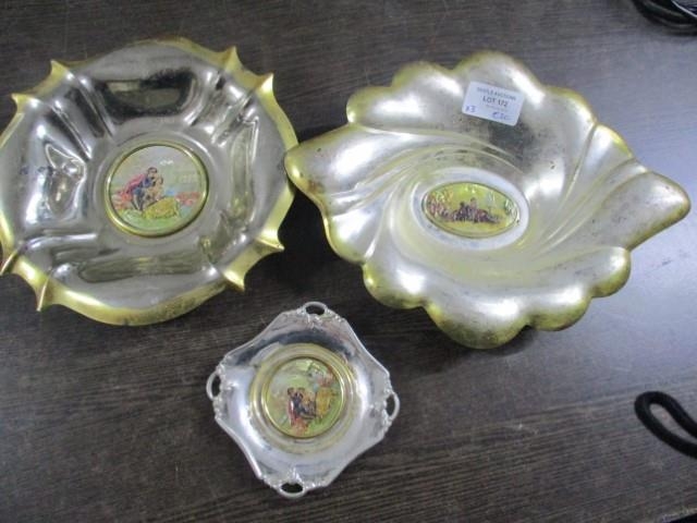 3 x White Metal Dishes with Decorated Silvers Inset & Victorian Couple Scene, (3)