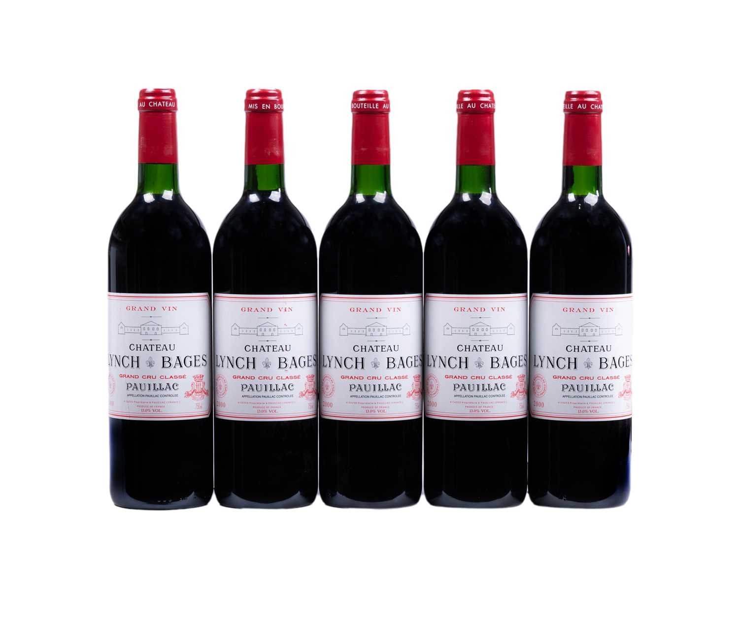 Five bottles of 2000 Chateau Lynch Bages Grand Cru Classe Pauillac, 750ml, 10% Vol. Qty: (5) Private collection In good, clean condition with levels above top of shoulder.