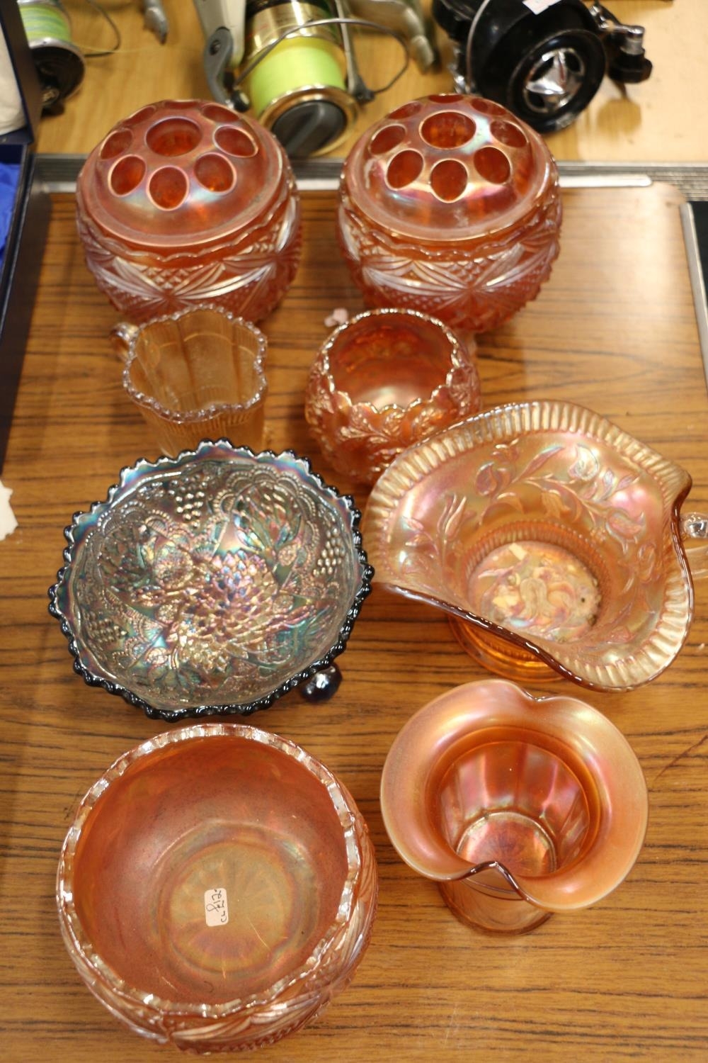 Carnival Glass flower holders, jugs, bowls, etc.