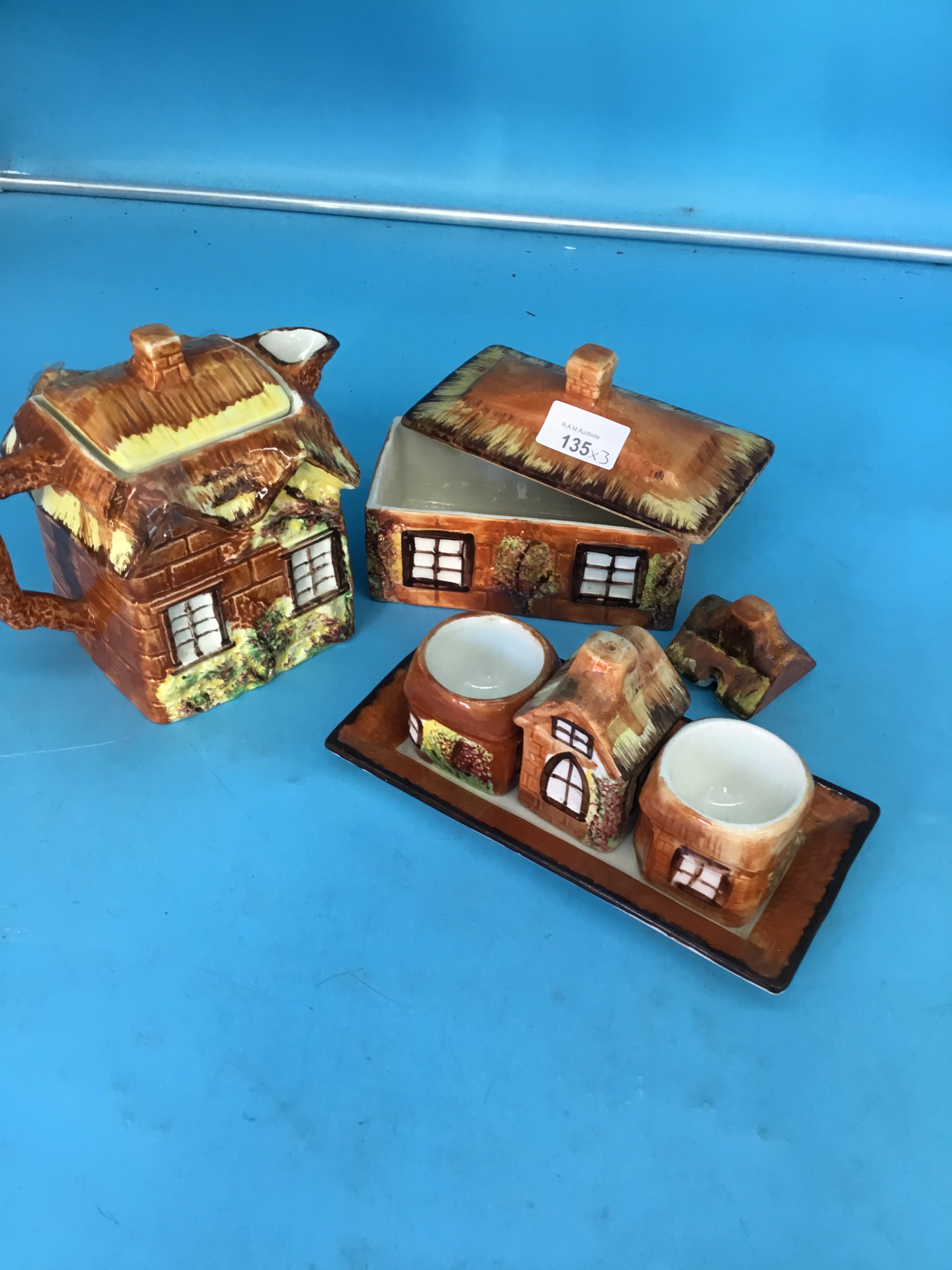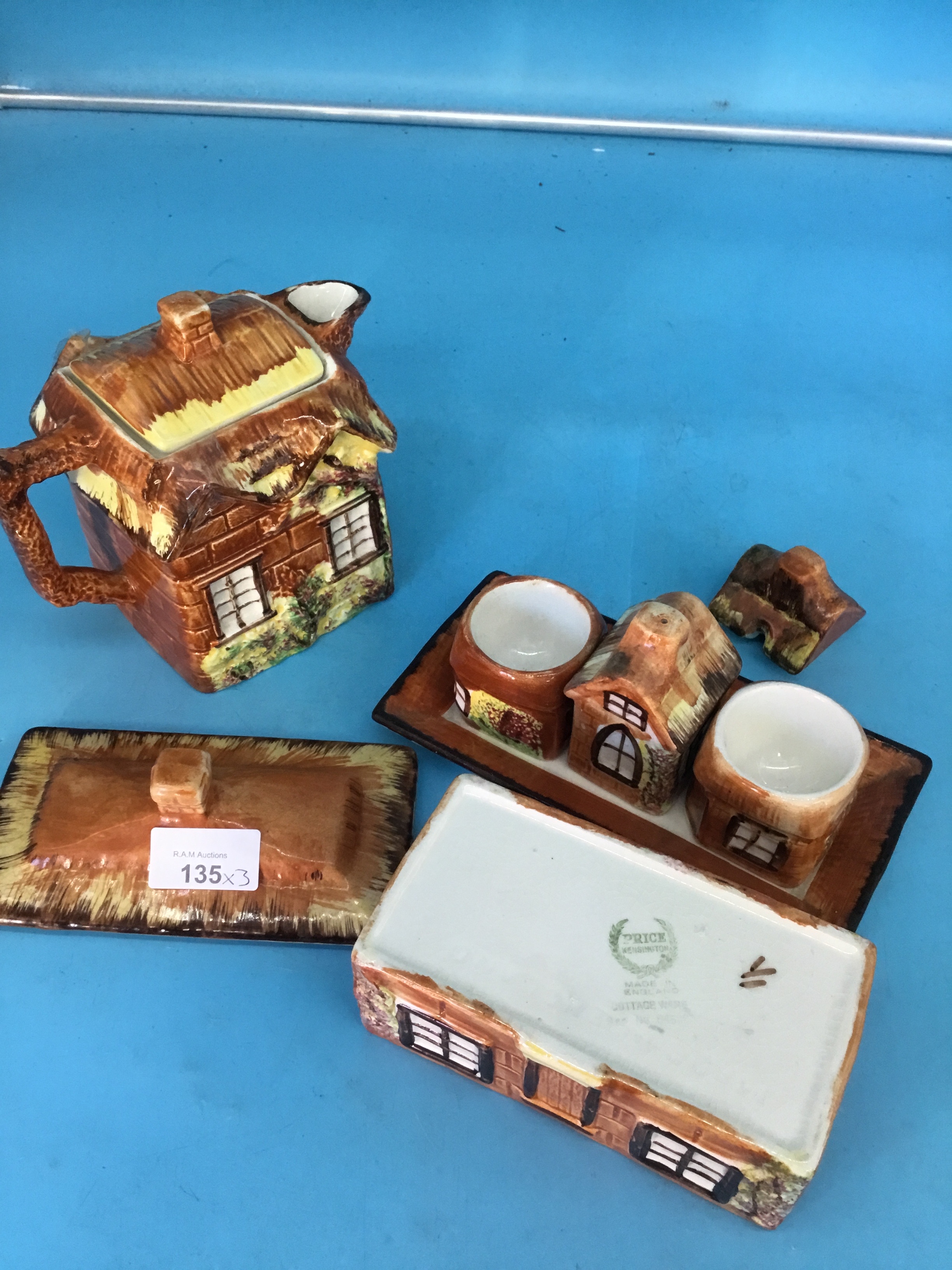 Ye Olde Cottage by Price Kensington To Include Tea Pot, Butter Dish, Egg Cups on a Tray and a Salt Cellar