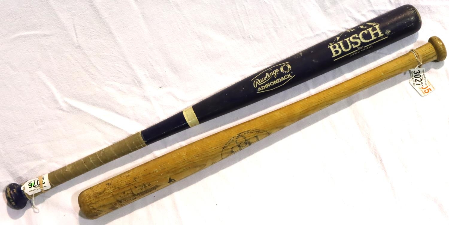 Rawlings Adirondack softball bat with canvas bound grip and a H & B triple crown junior league baseball marked Johnny bench. P&P Group 3 (£25+VAT for the first lot and £5+VAT for subsequent lots)