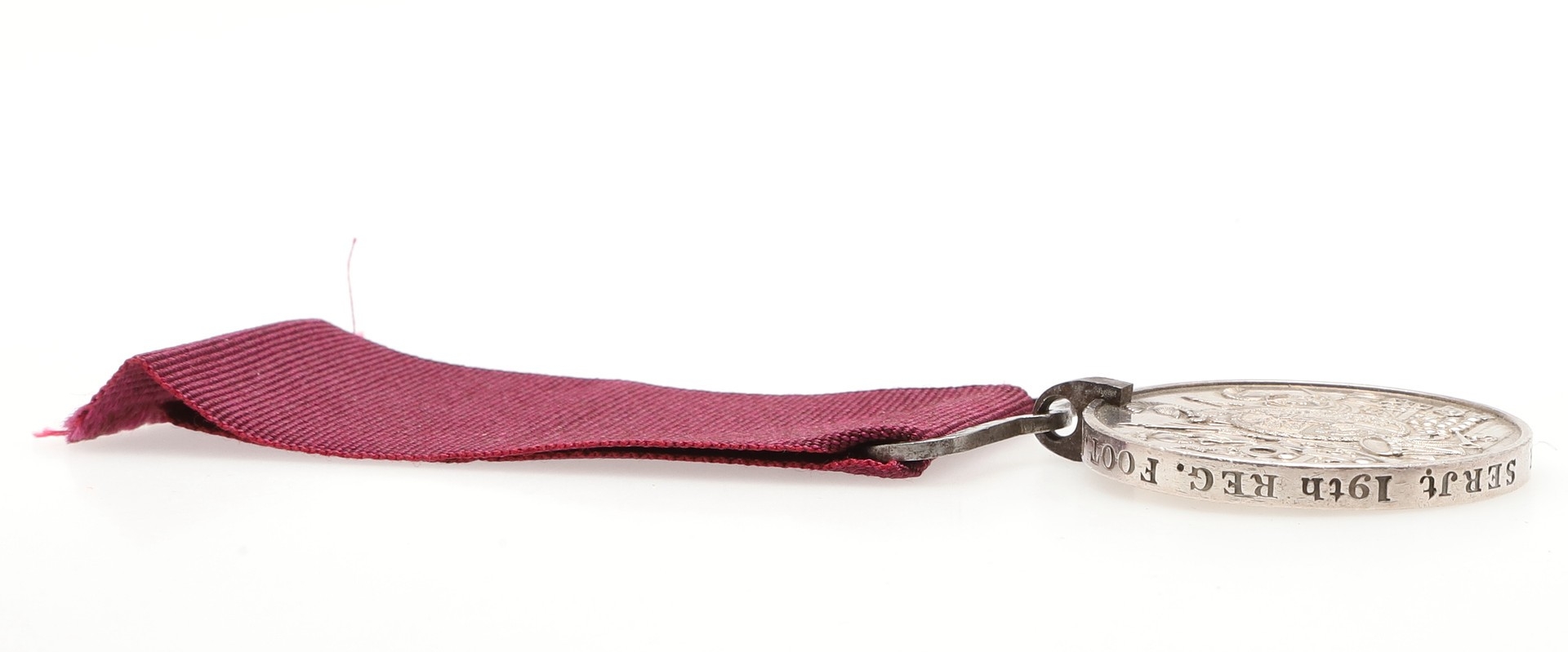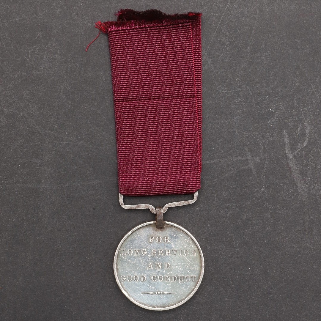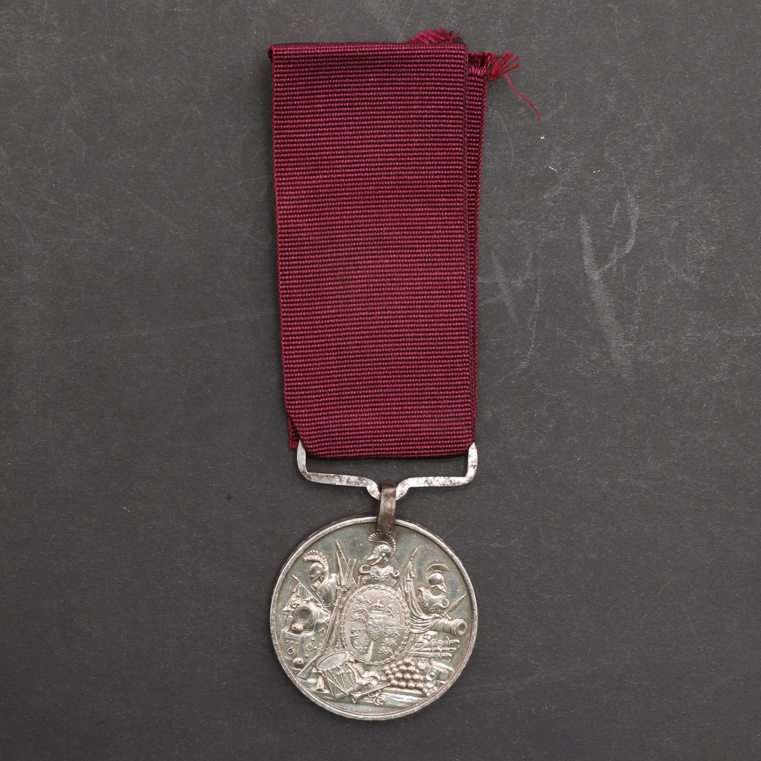 A WILLIAM IV ARMY LONG SERVICE AND GOOD CONDUCT MEDAL TO THE 19TH REGIMENT OF FOOT. An Army Long Service and Good Conduct Medal named to W. Robottom Q. MAster Serjt 19th Reg. Foot. 1834. On Iron clip and horizontal bar suspension. William Robottom was born in Nuneaton in 1872. He enlisted for the 18th Regiment of Foot at Dover on the 4th May 1812 with the regimental number 12. A clear and well presented Service record survives. Private from 4th May 1812, Corporal from 24th June 1813, Serjeant from 17th July 1917 and Quarter Master Serjeant from 16th March to the 31st August. He served in the East Indies, West Indies and at home, 'a good and efficient soldier, seldom in hospital, trustworthy and sober'. 'frequently ... in situations of great trust and responsibility in which he always acquitted himself with credit'. On leaving the Army he became house keeper of the Newington Sessions House until his death in 1862 '... Mr William Robottom, keeper of the Newington Session House, aged 69. ... He has enjoyed the respect and confidence , not only of those who appointed him, but of gentlemen of the bar and others who accustomed to attend the sessions. With a copy of 'The Diary of Cr Serjt. Calladine 19th Foot' which makes mention of Quarter Master Serjeant Robottom/Rowbottom on four occasions.