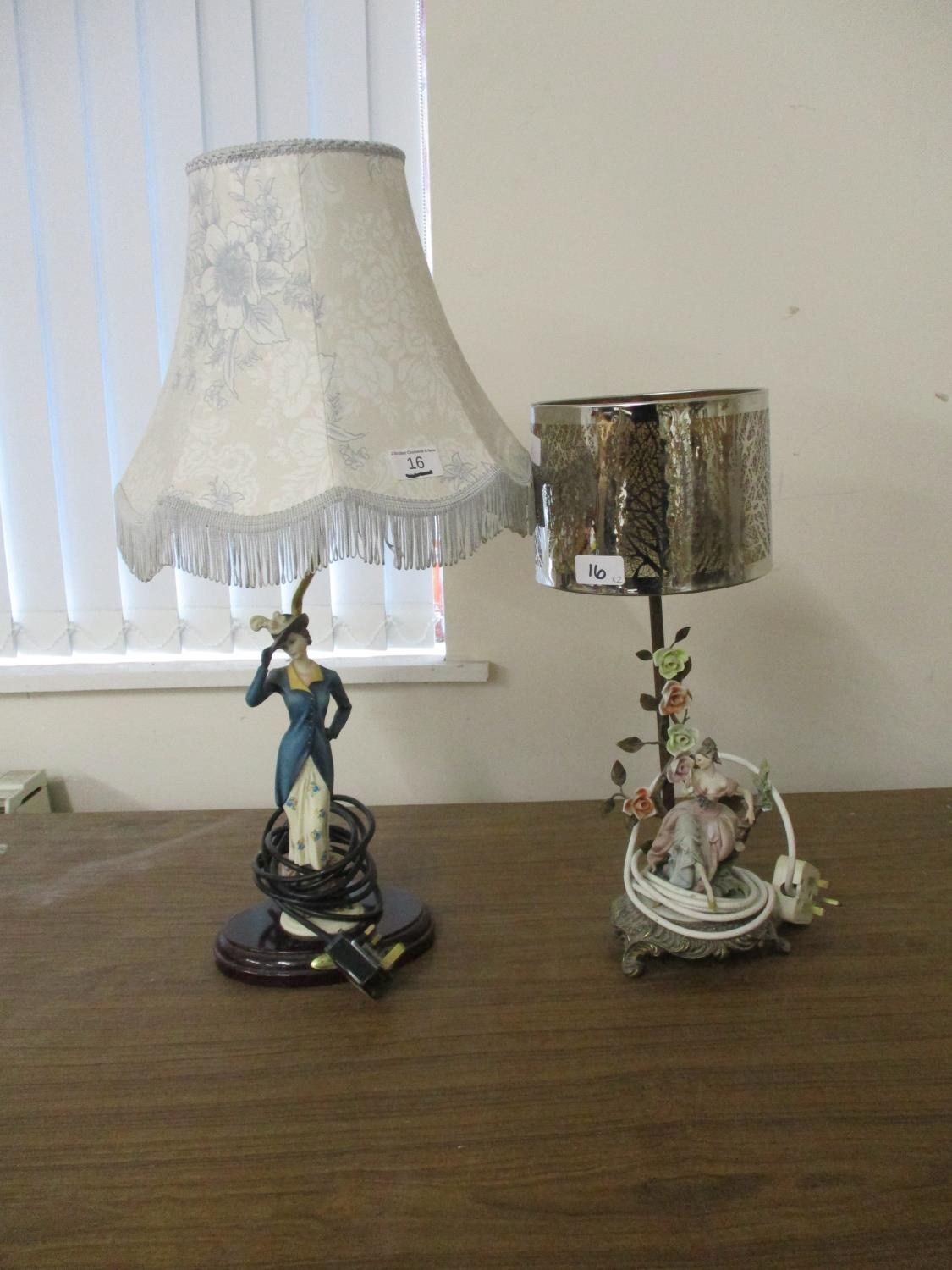 TWO TABLE LAMPS, FIGURES OF LADIES