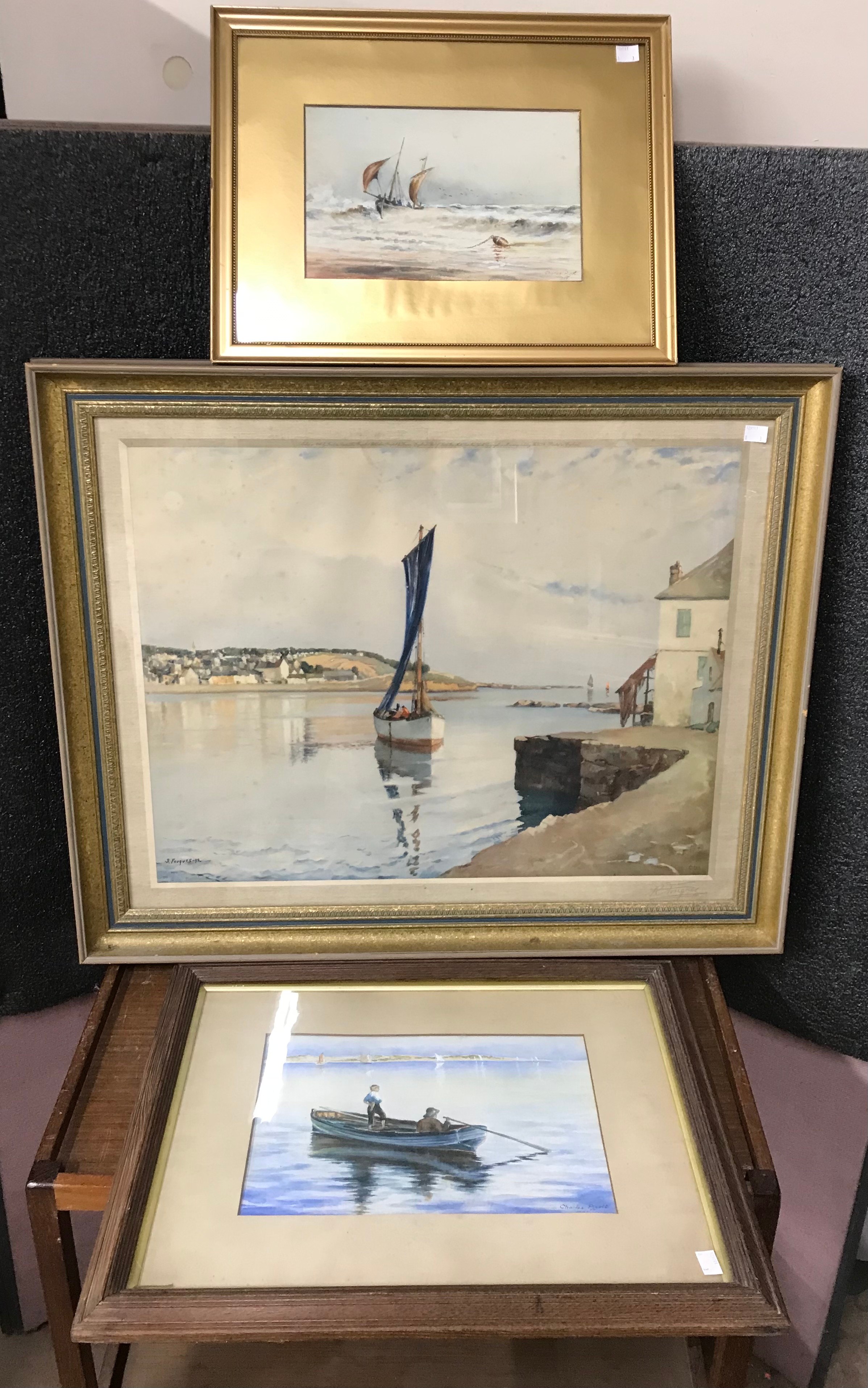 Charles Pigget, three marine landscapes, watercolour, framed