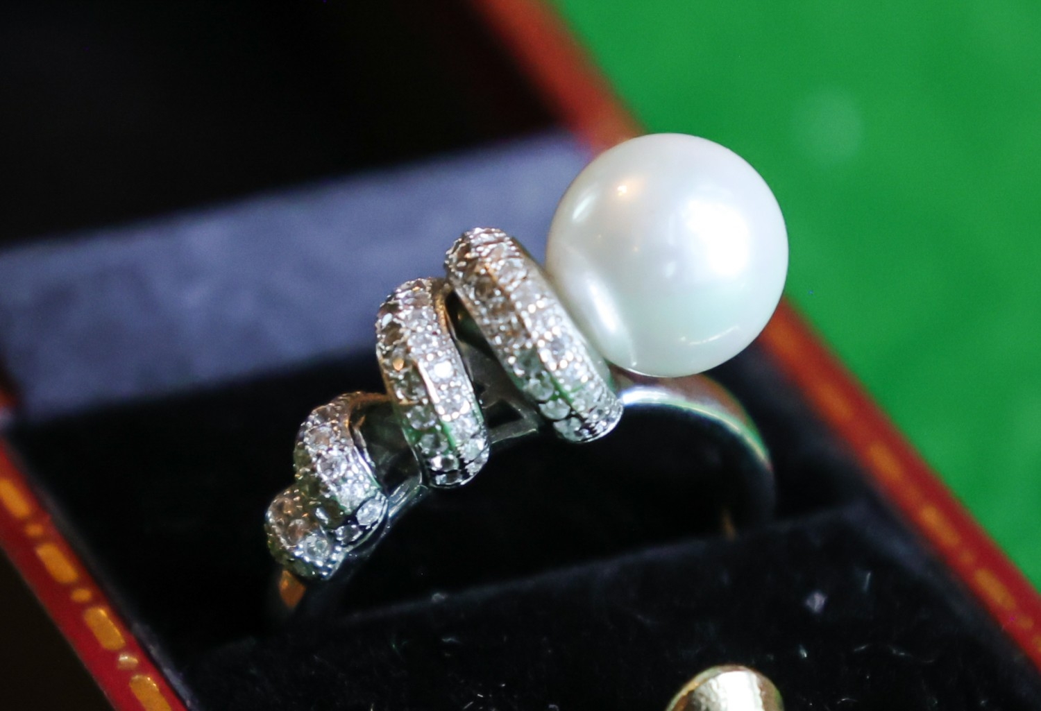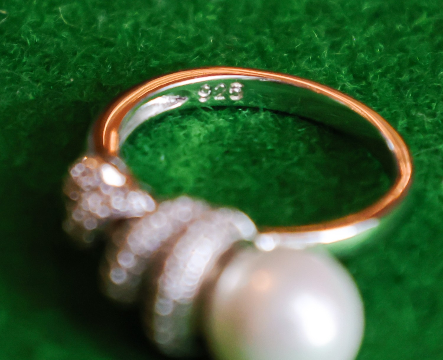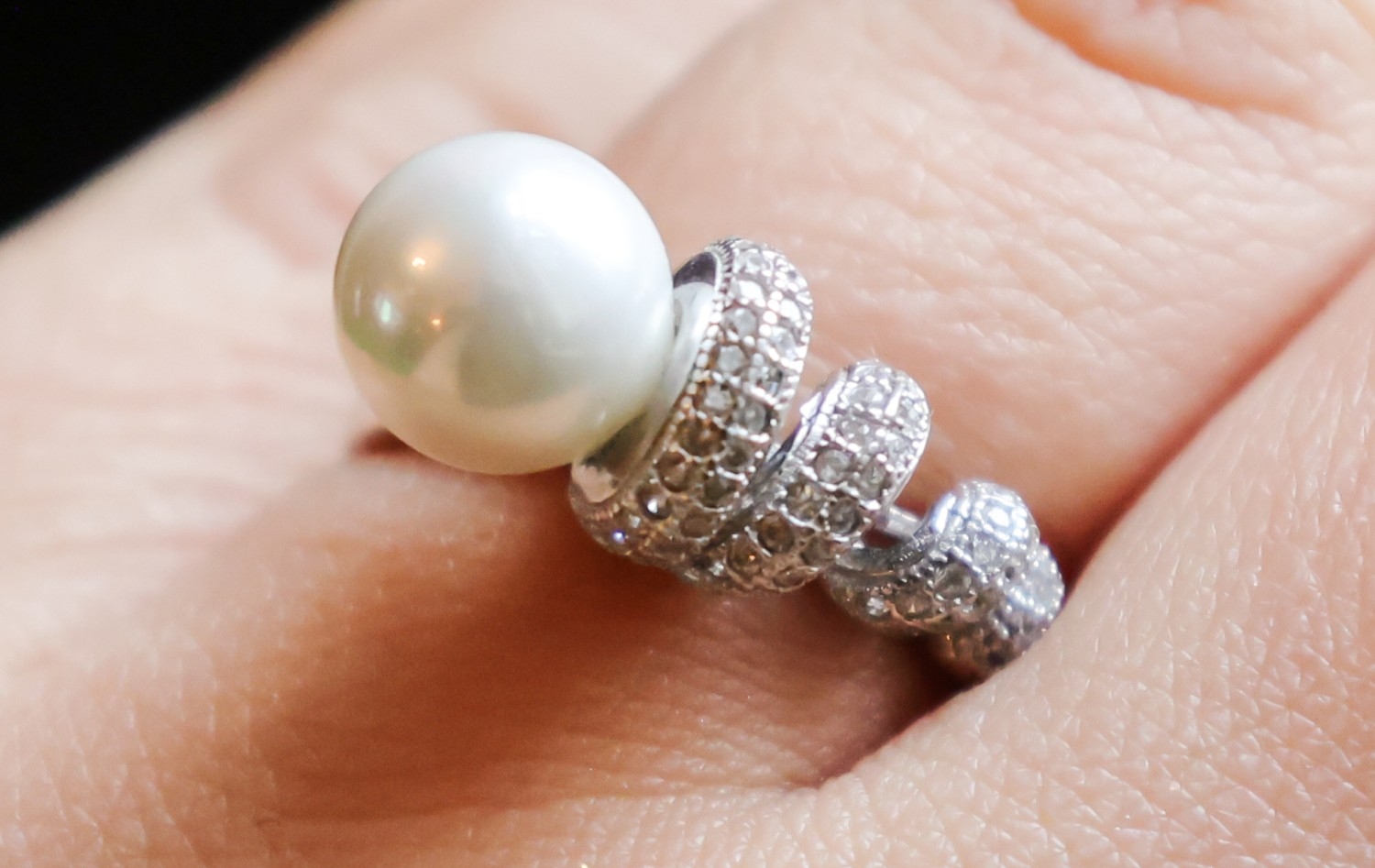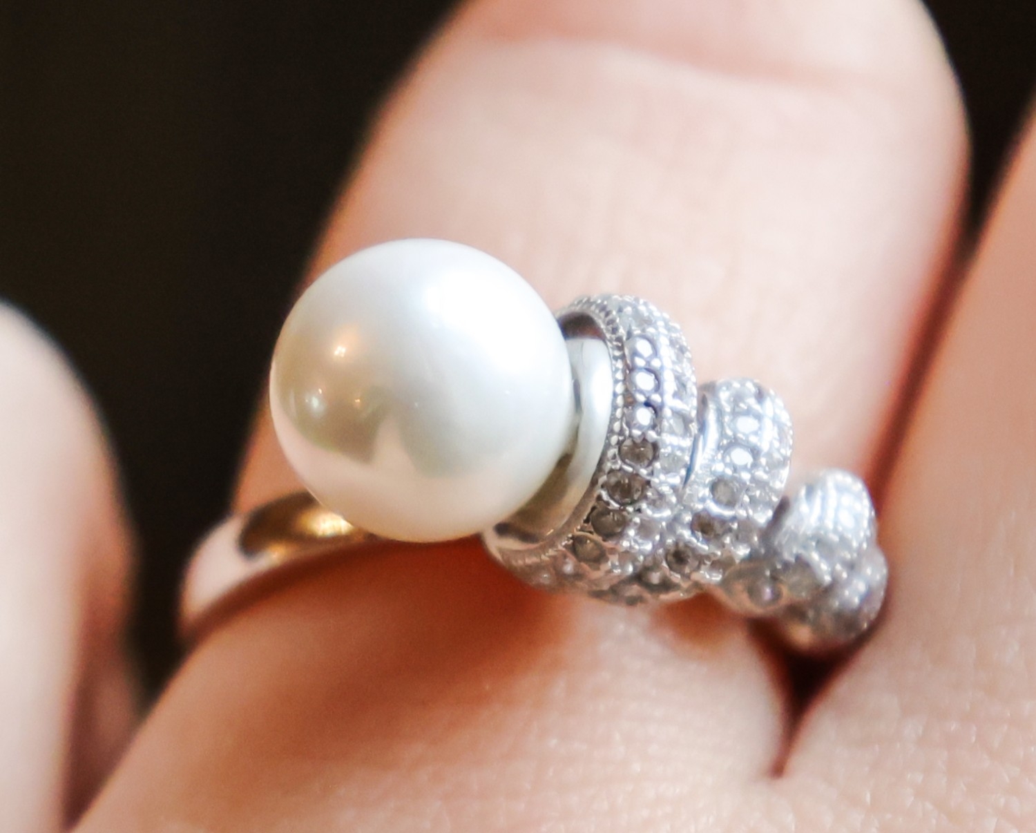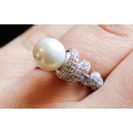 Pearl and Diamond Set Ladies Ring Mounted on Silver Band Size N