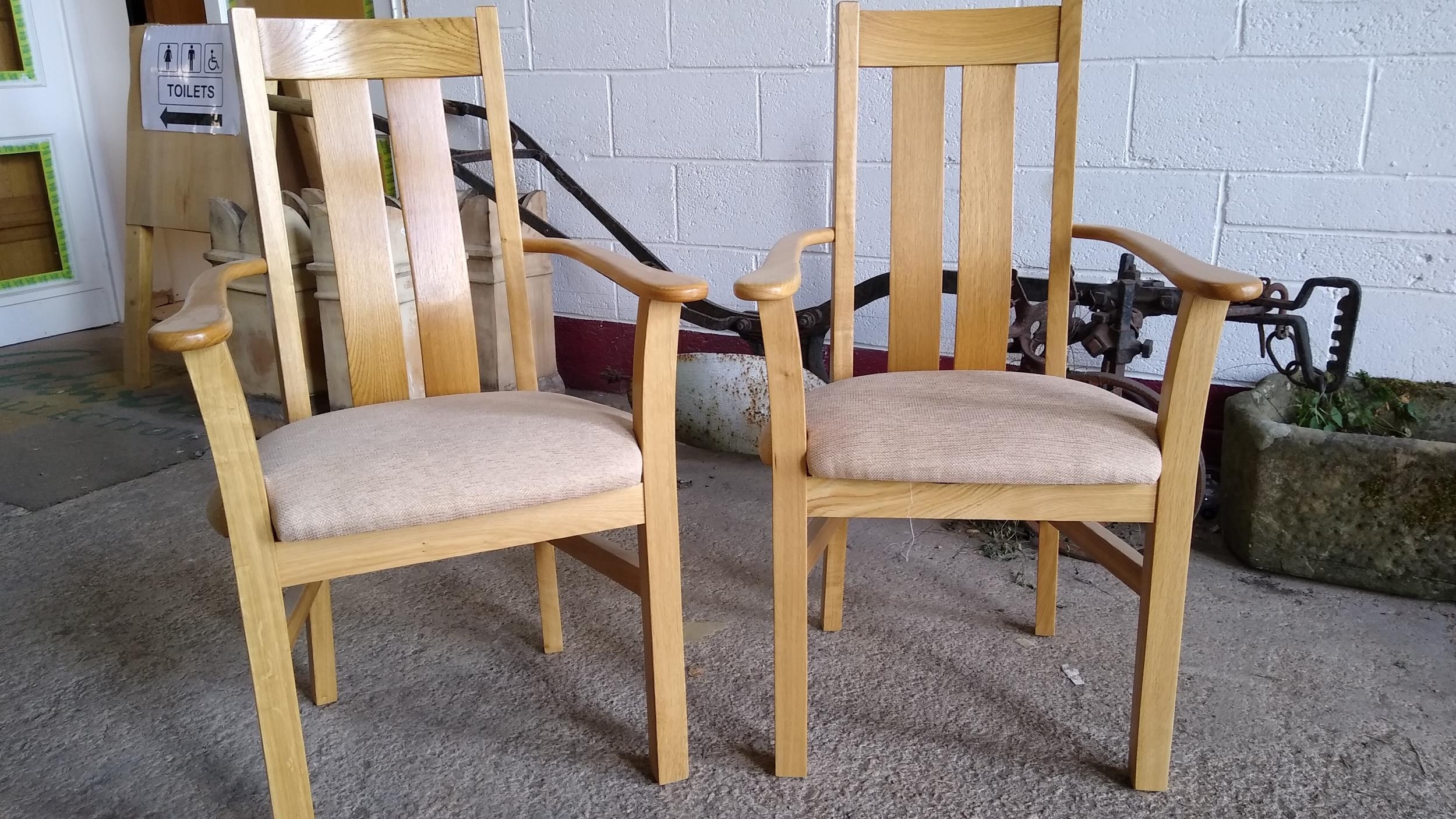 Cotswold Collection Pair of Oak Carvers with Fabric Pads, H 1015mm W 600mm D 425mm