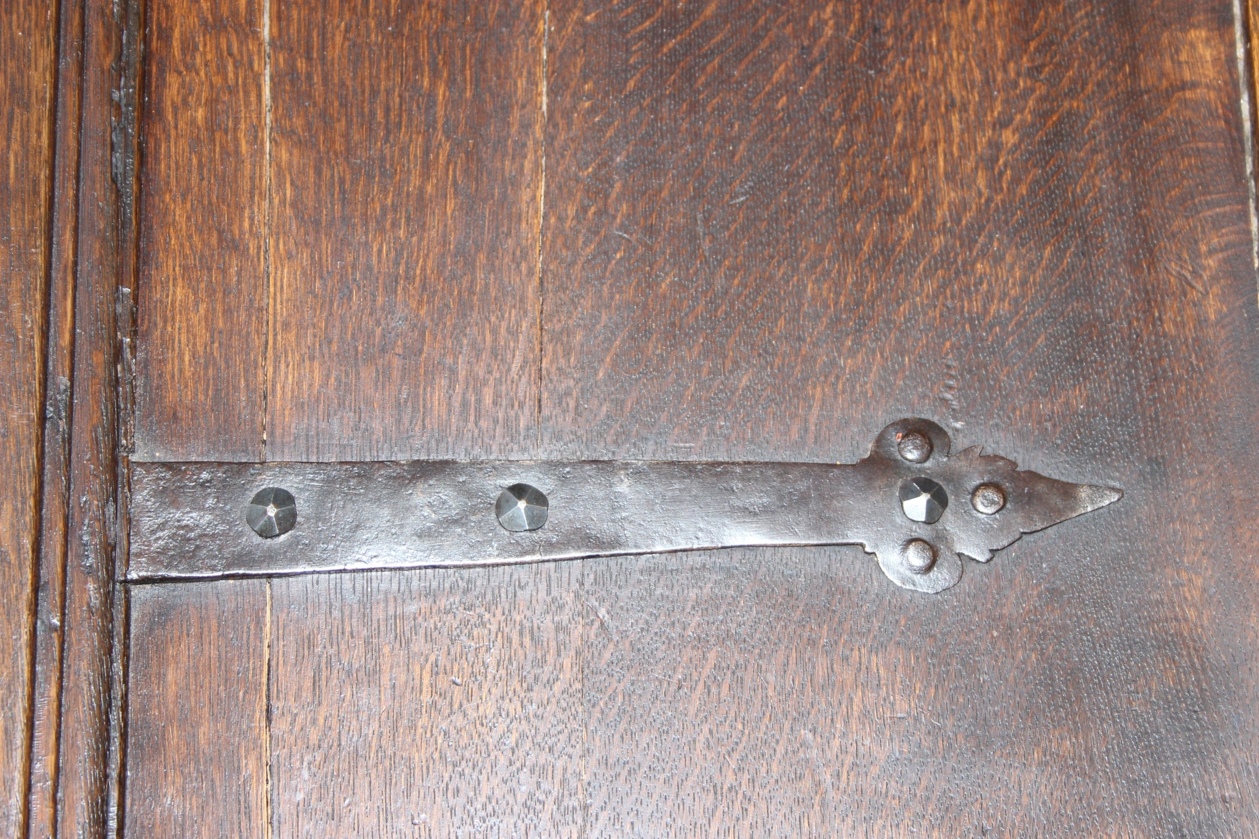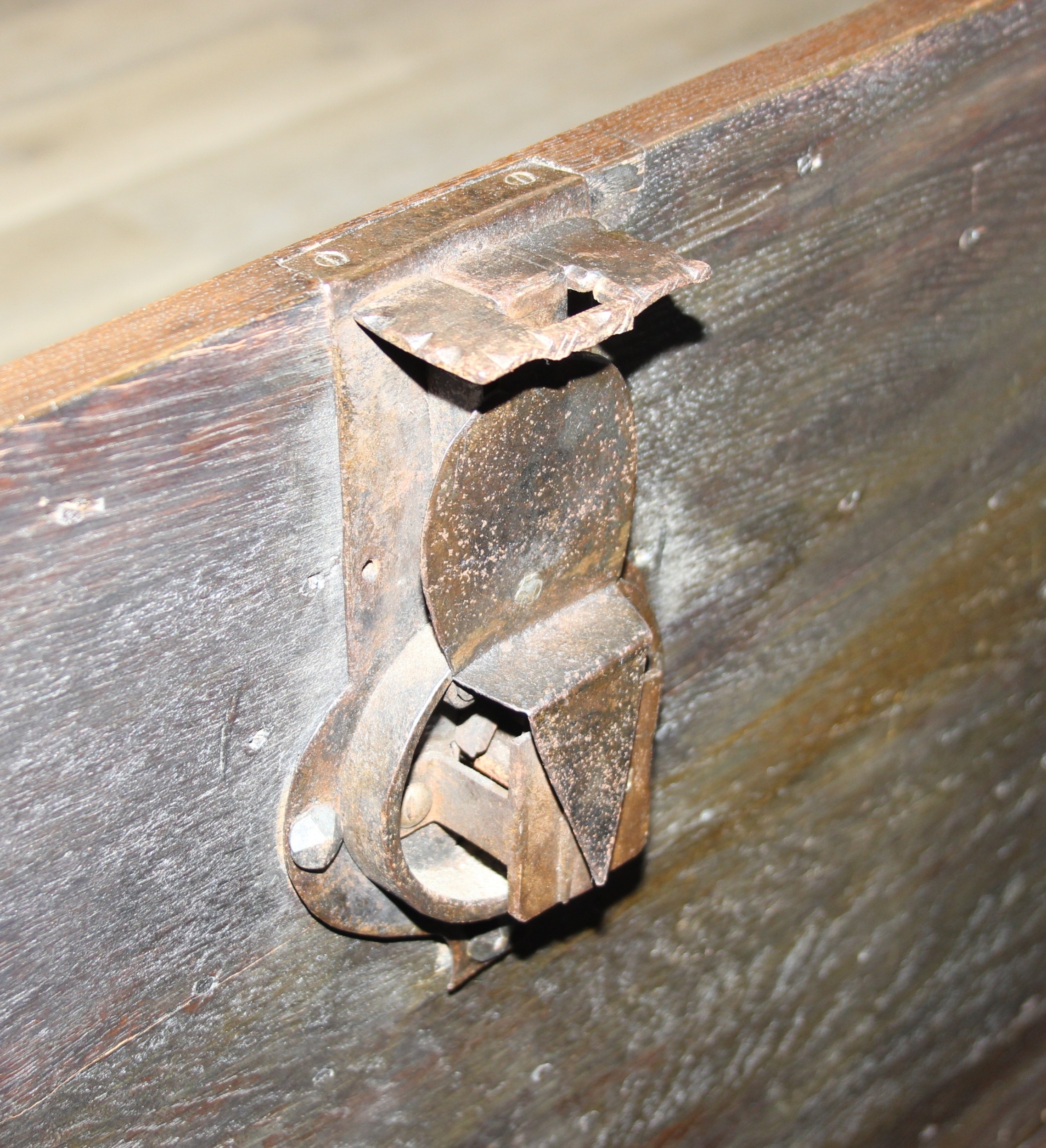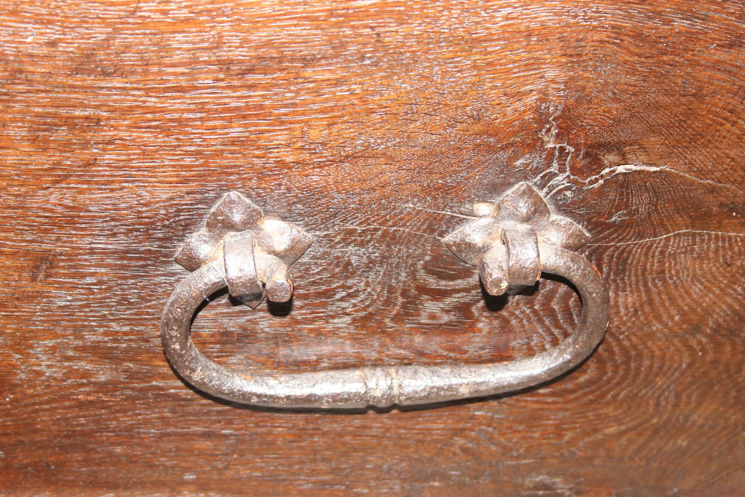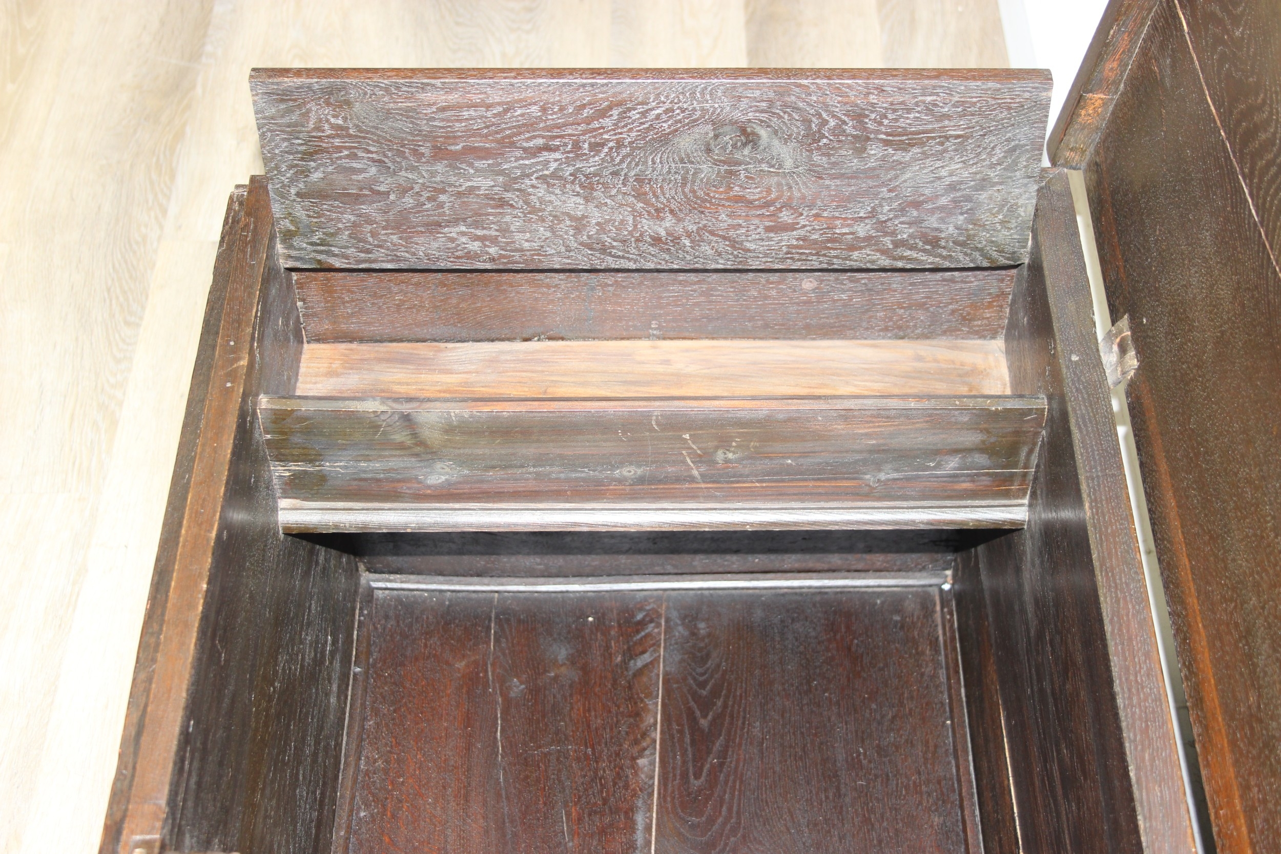 An unusual antique carved oak trunk or coffer depicting the four evangelists or gospels, possibly Italian with interesting lock plate, believed to be 18th century, 114cm x 61cm x 58cm
