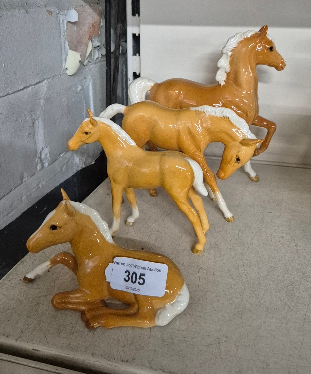 Beswick - 4 Palomino horses including Prancing Arab Type 1st version (1261)