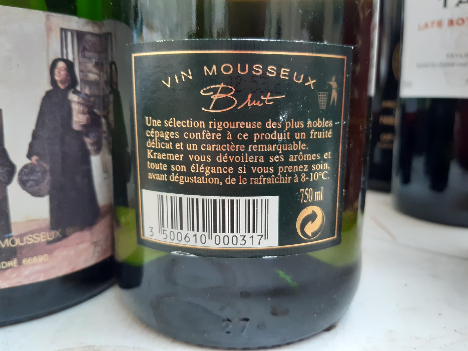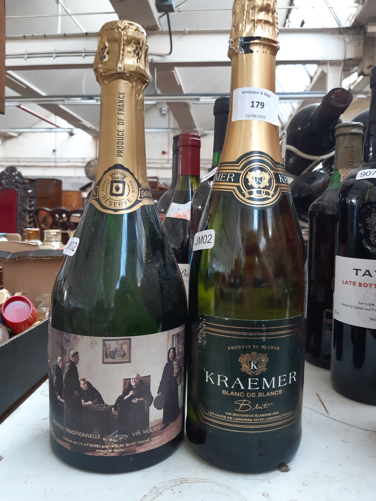 Two bottles of sparkling wine to include Kraemer Blanc de Blancs Brut Vin Mousseux and Scav les Vignerons de Saint-André Vin Mousseaux