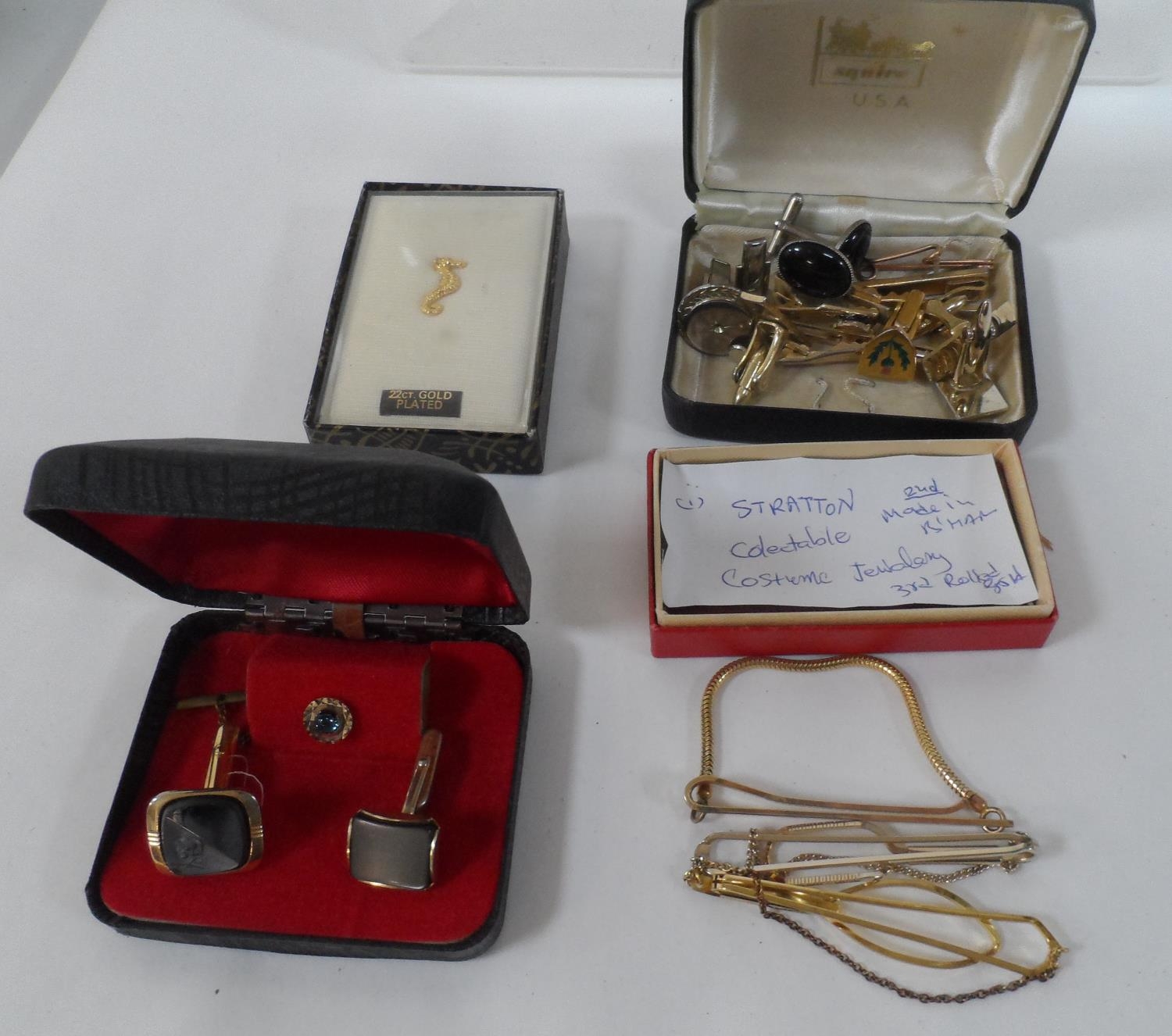 Large quantity of gents cuff-links, tie pins and holders including a cased, as new 22ct gold plated Seahorse example (Qty)