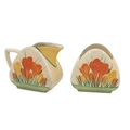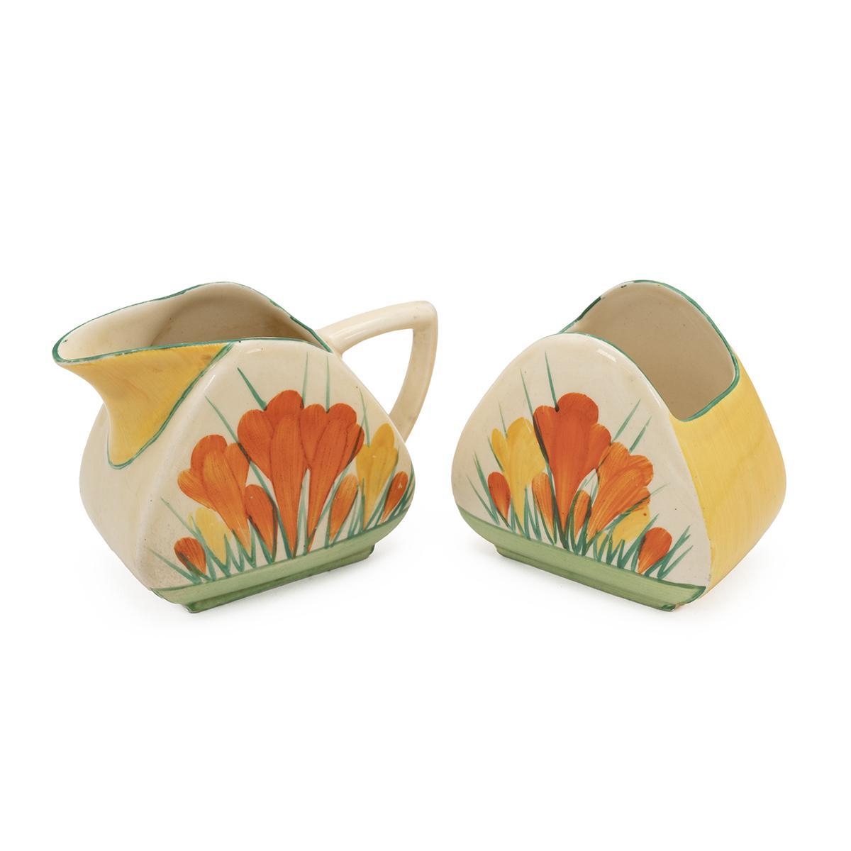 Clarice Cliff for Wilkinson Bizarre series Spring Crocus pattern cream jug and sugar bowl. Height - each 7cm. (2)