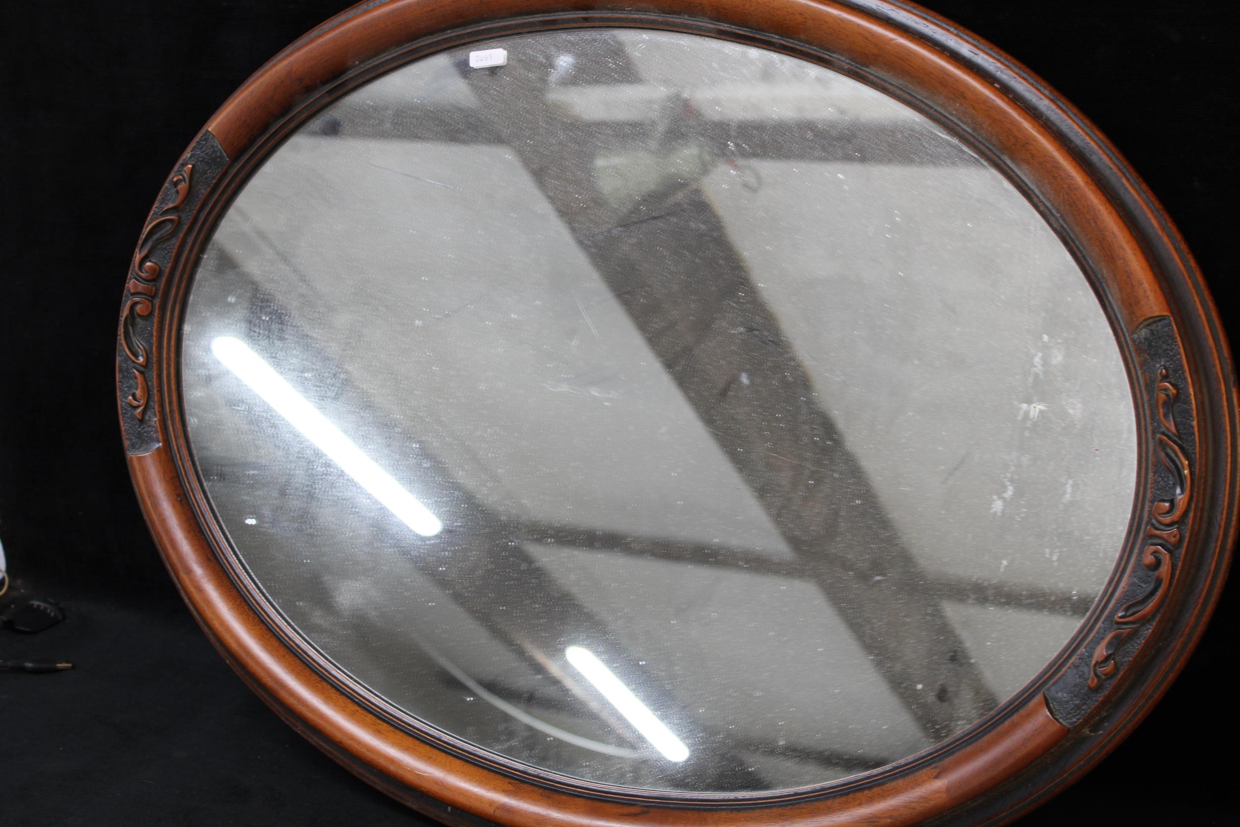 A large oval framed mirror 77cmW X 56cmH