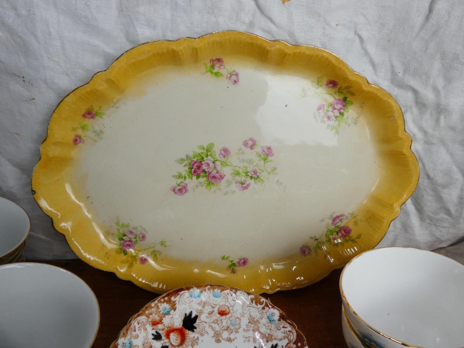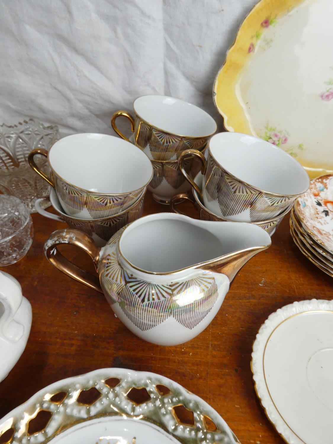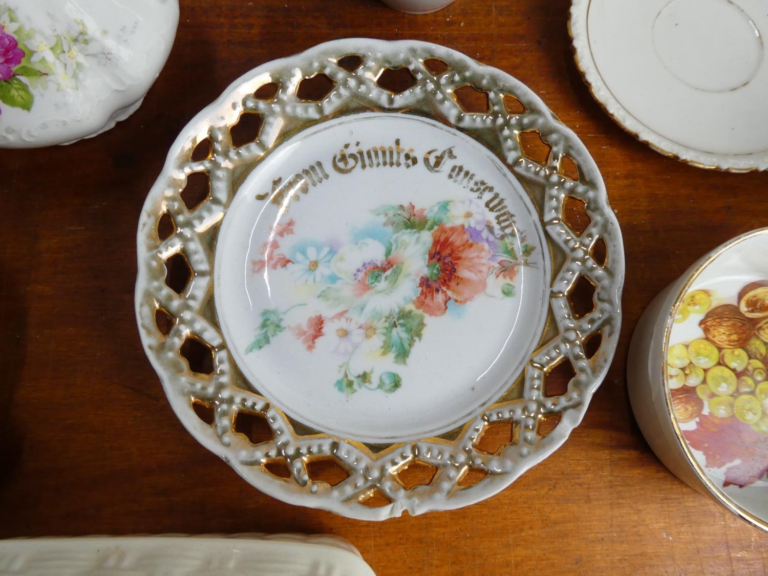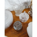 A boxed lot of ceramics and glass ware to include a Denby dish, an Aynsley butter dish and more.