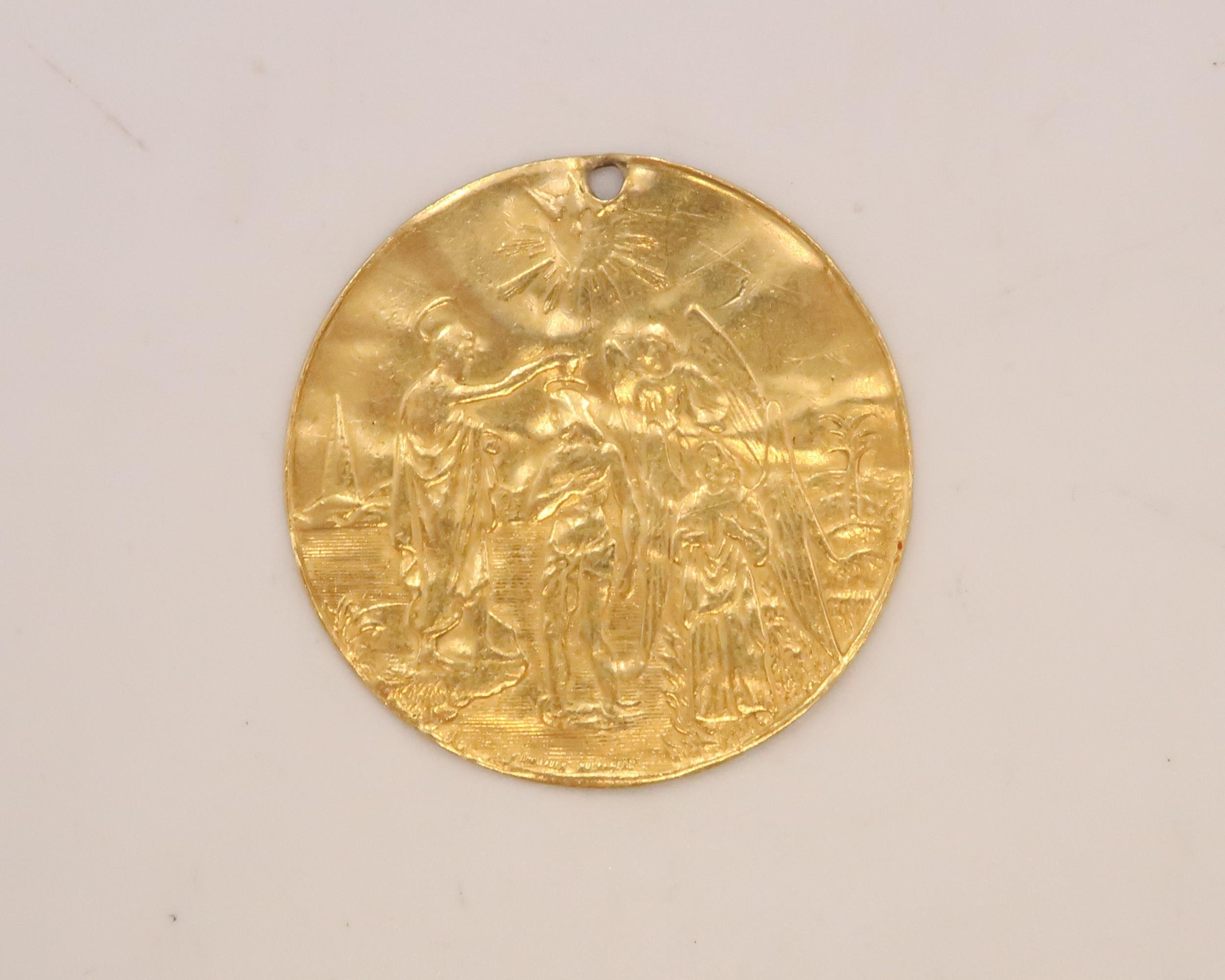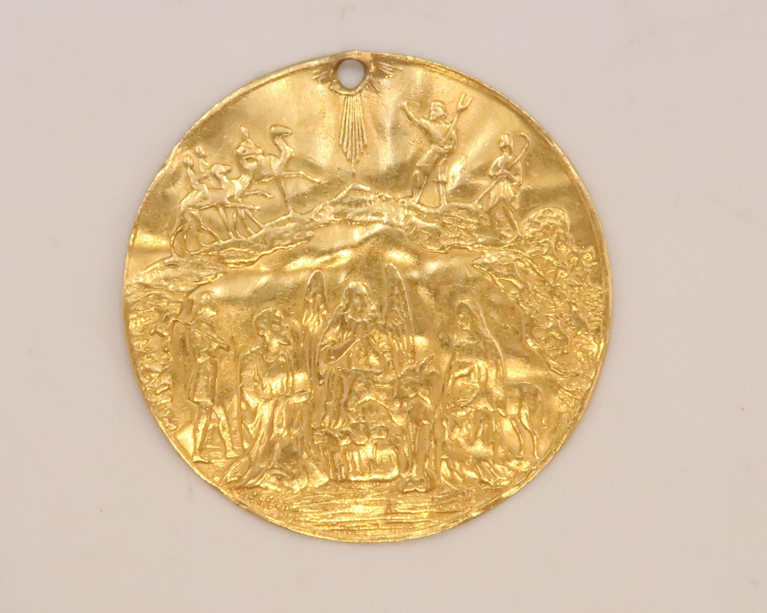 A 22ct Gold Tested Gold Medallion. Obverse depicts a nativity scene with the reverse showing the baptism of Christ.