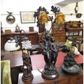 Reproduction brown patinated composite figural table lamp, 79cm high, together with two similar smaller table lamps