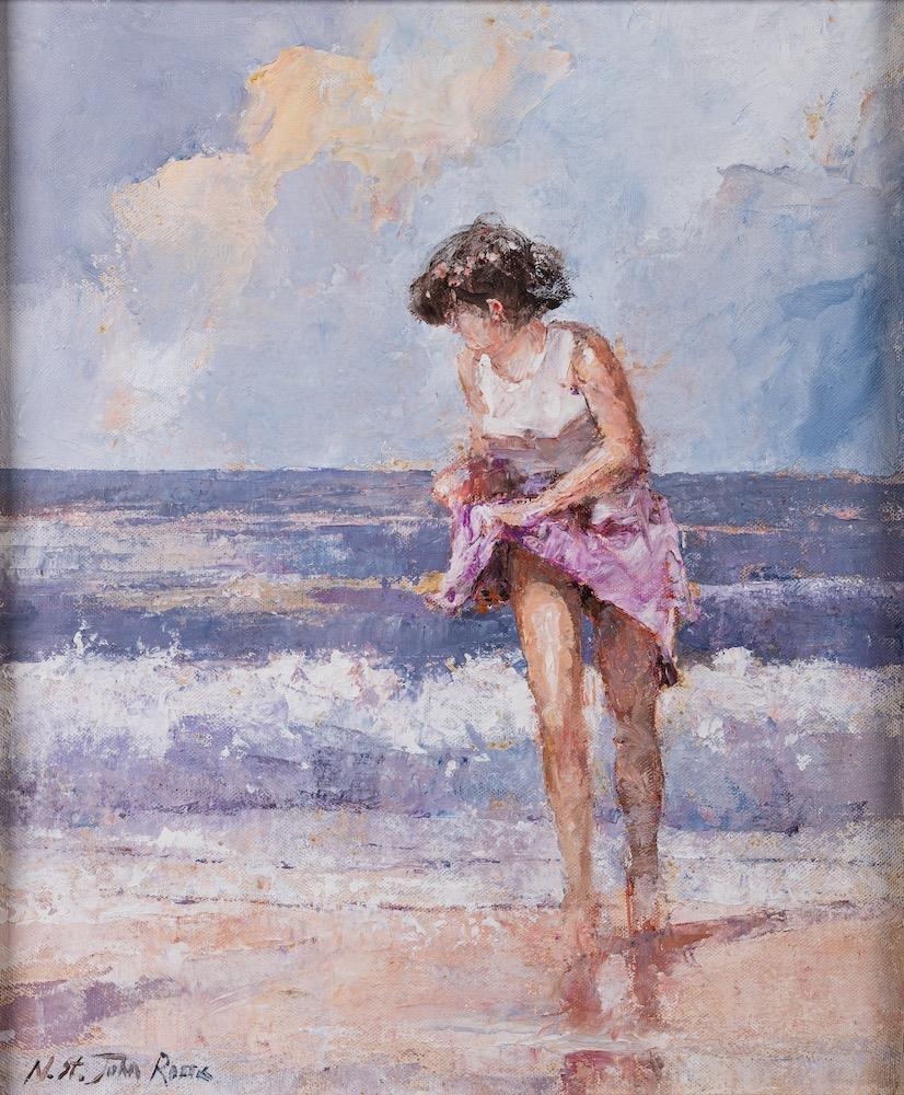 * Nicholas St John Rosse (b.1945) A young woman paddling signed lower left oil on board 29 x 24cm