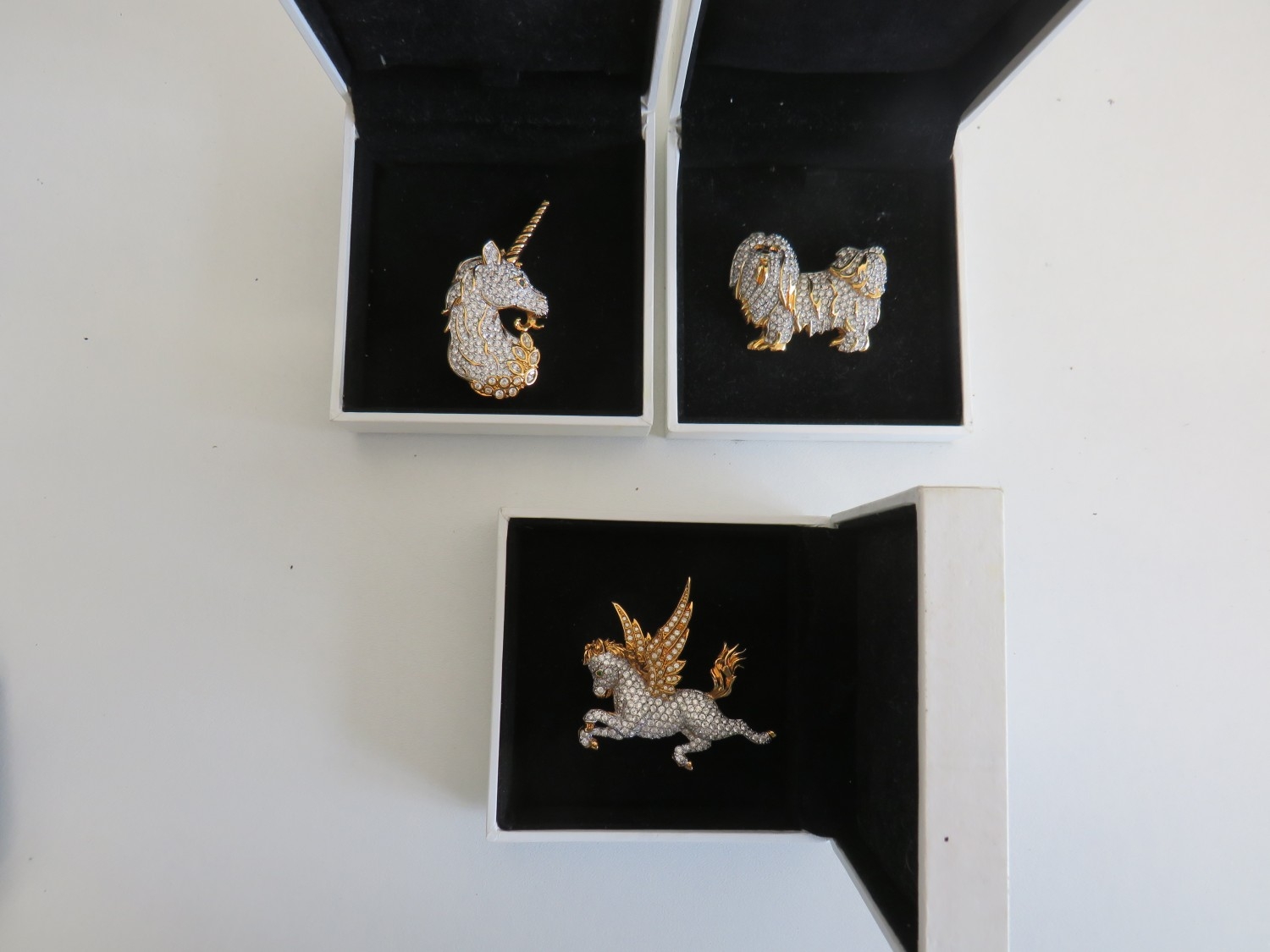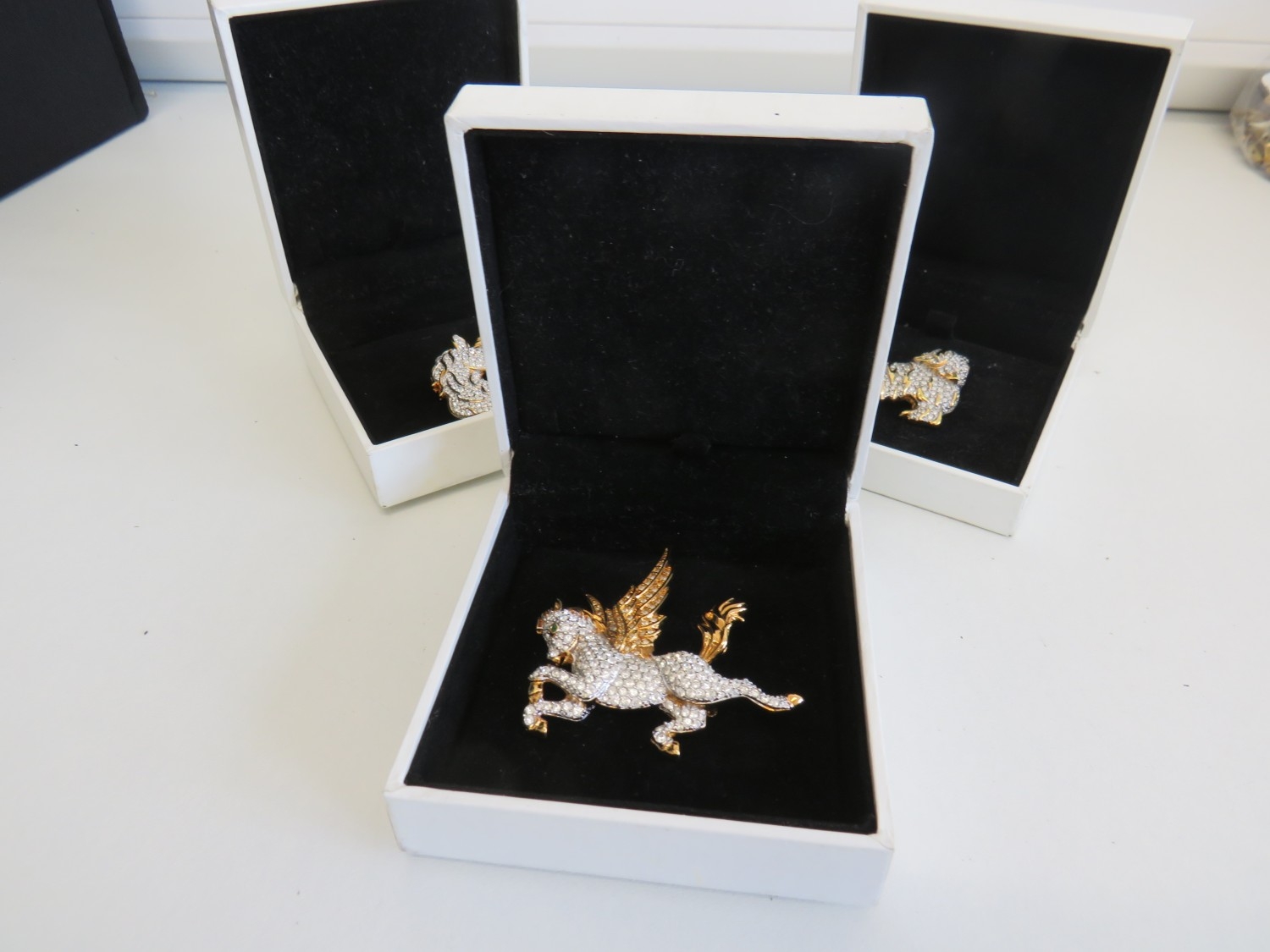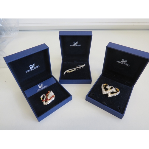 Three boxed Swarovski brooches