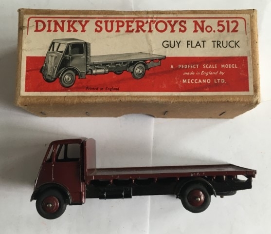 An early boxed Dinky Meccano Guy flat truck in brown. Model No. 512. Condition good as photographed