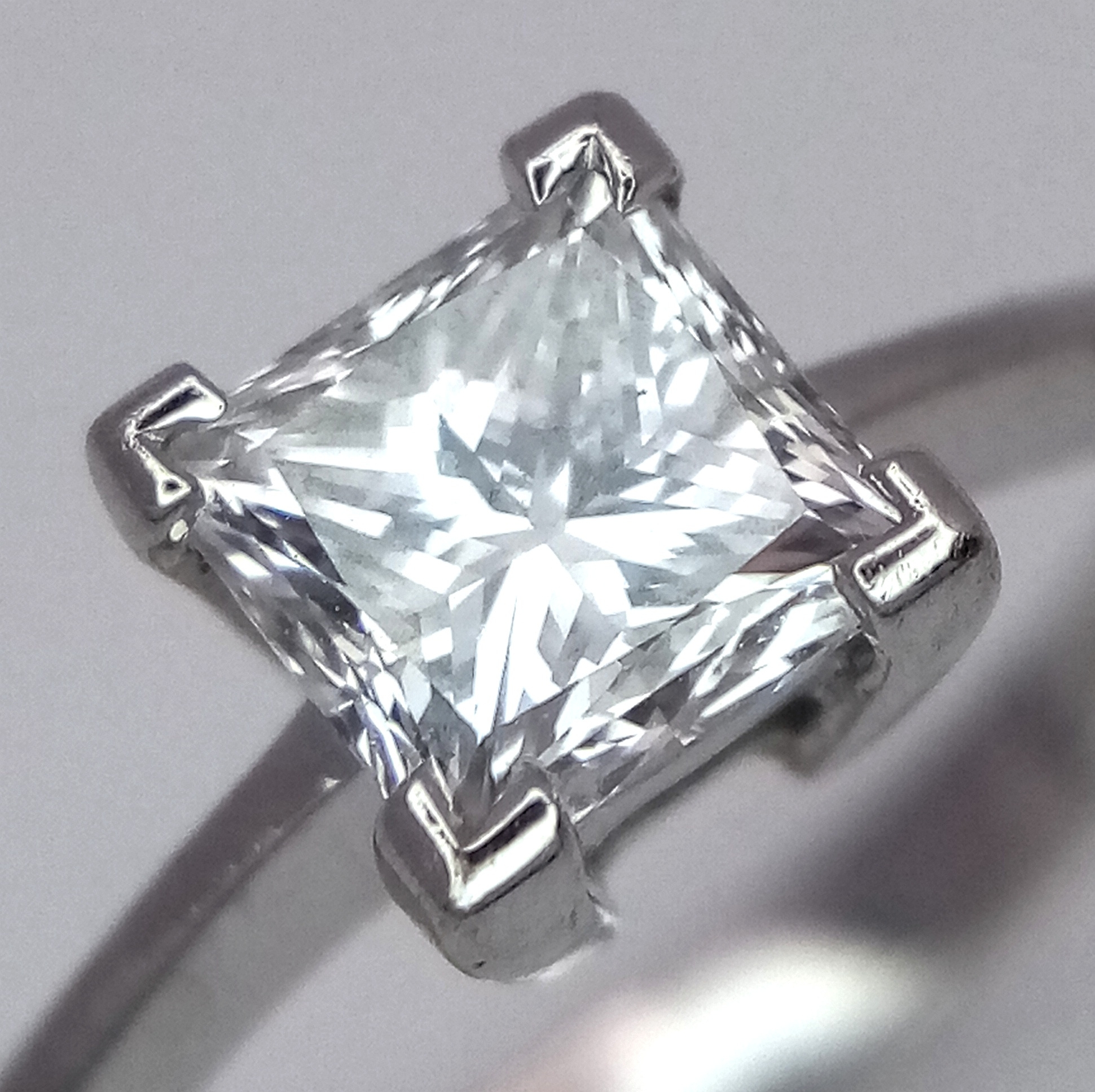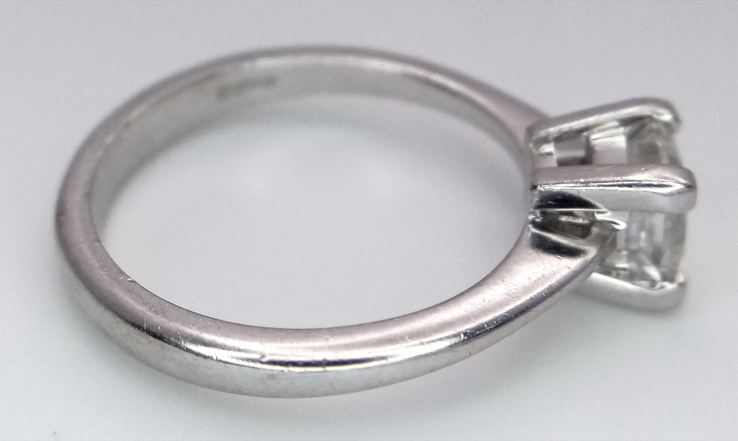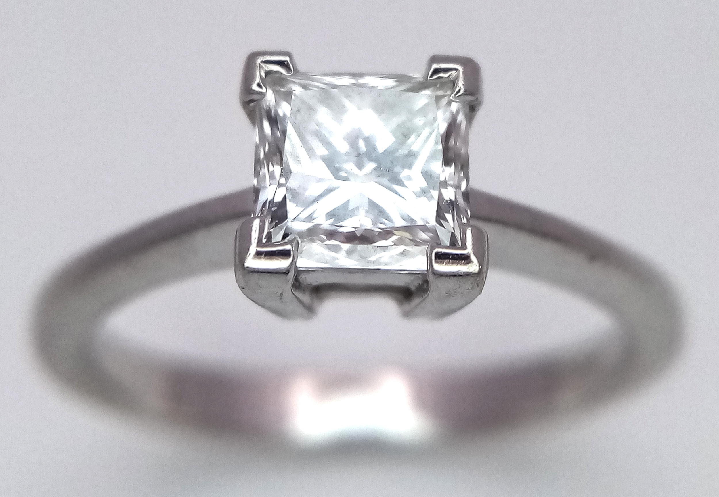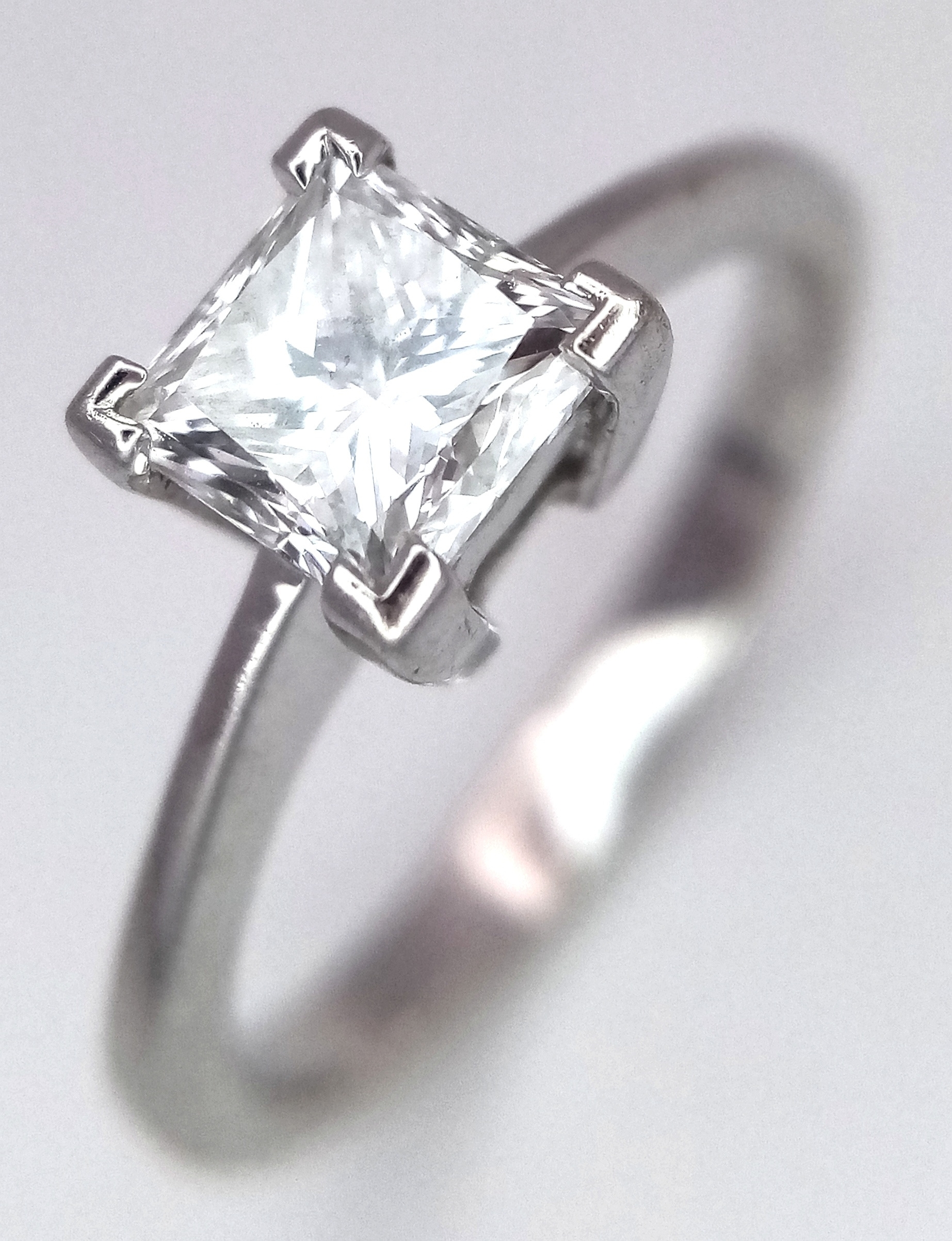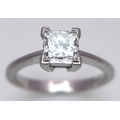 AN 18K WHITE GOLD, DIAMOND SOLITAIRE RING. PRINCESS CUT. 0.90CTW APPROX. 3.7G, SIZE M. SPSA 1034