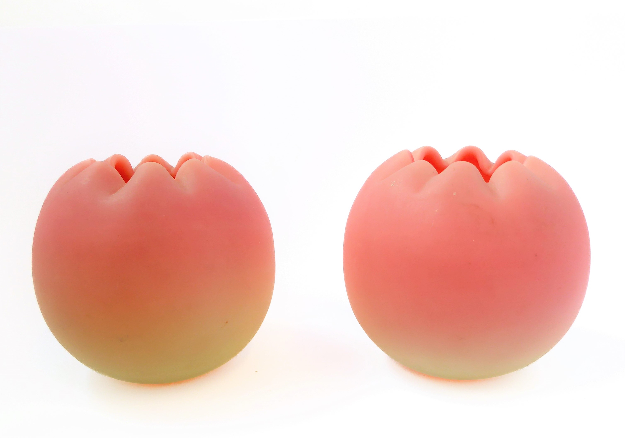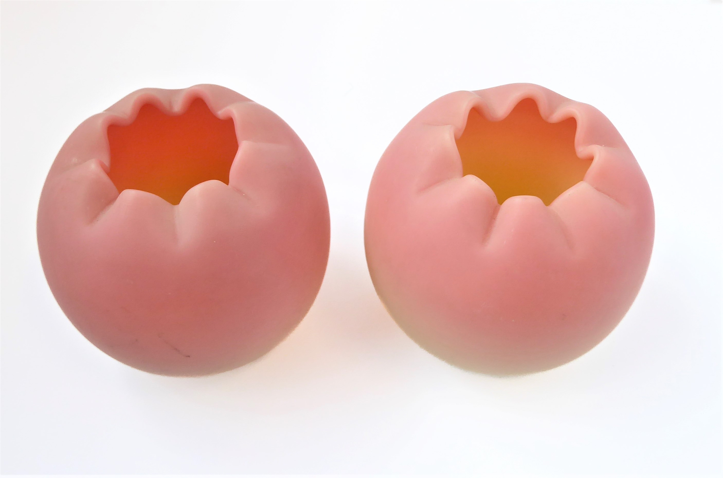 A small pair of 19th century Webb 'Queens Burmese' spherical glass vases with crimped rims