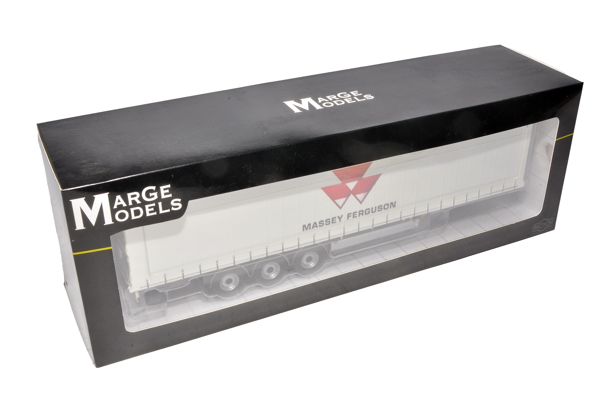 Marge Models 1/32 farm model issue comprising Pacton Curtainside Trailer Massey Ferguson edition, excellent and secure in excellent box.