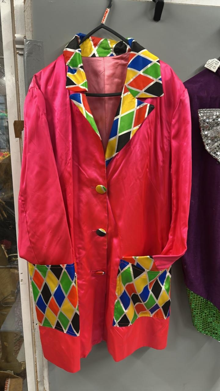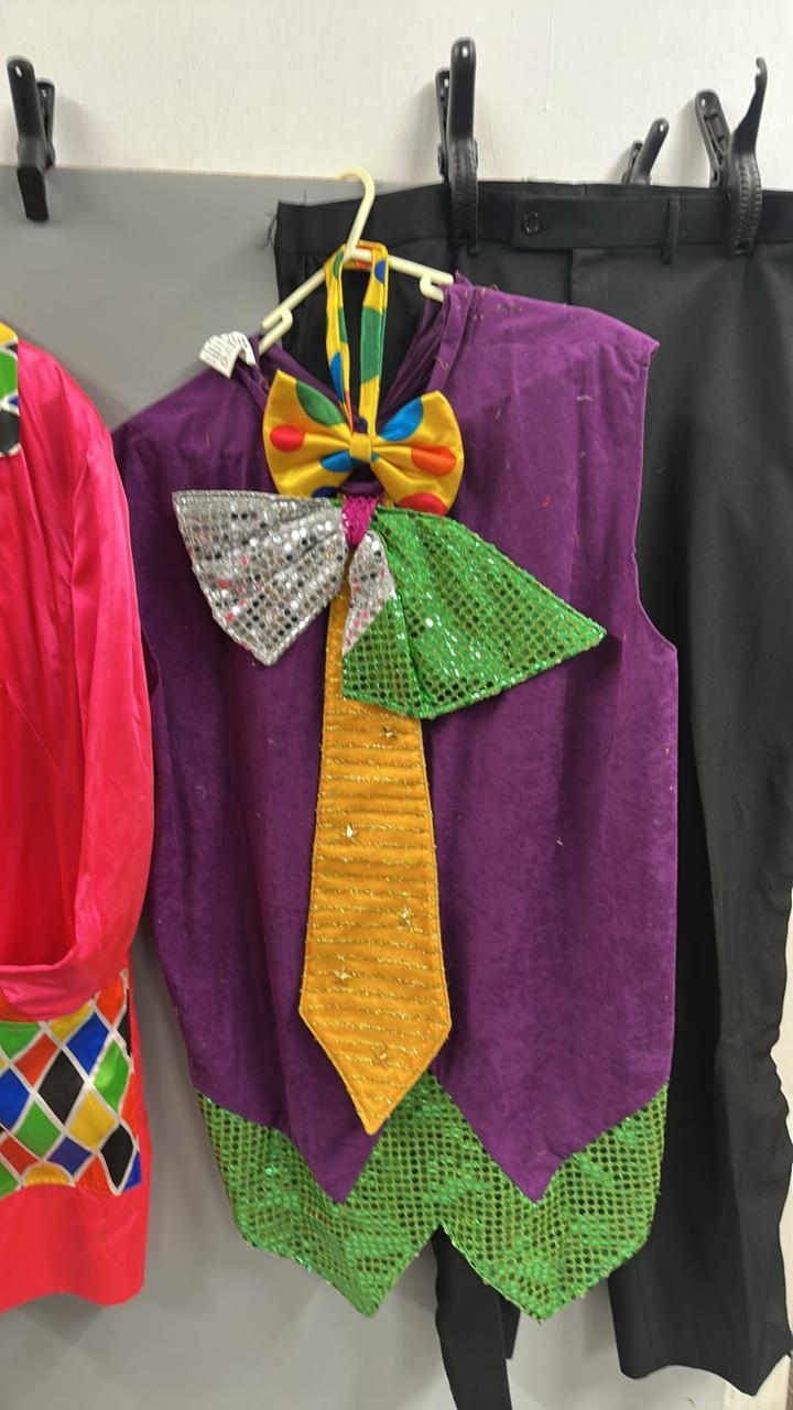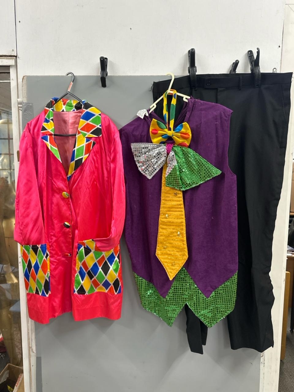 Stage worn colourful clown jacket waistcoat and trousers / Rail 4