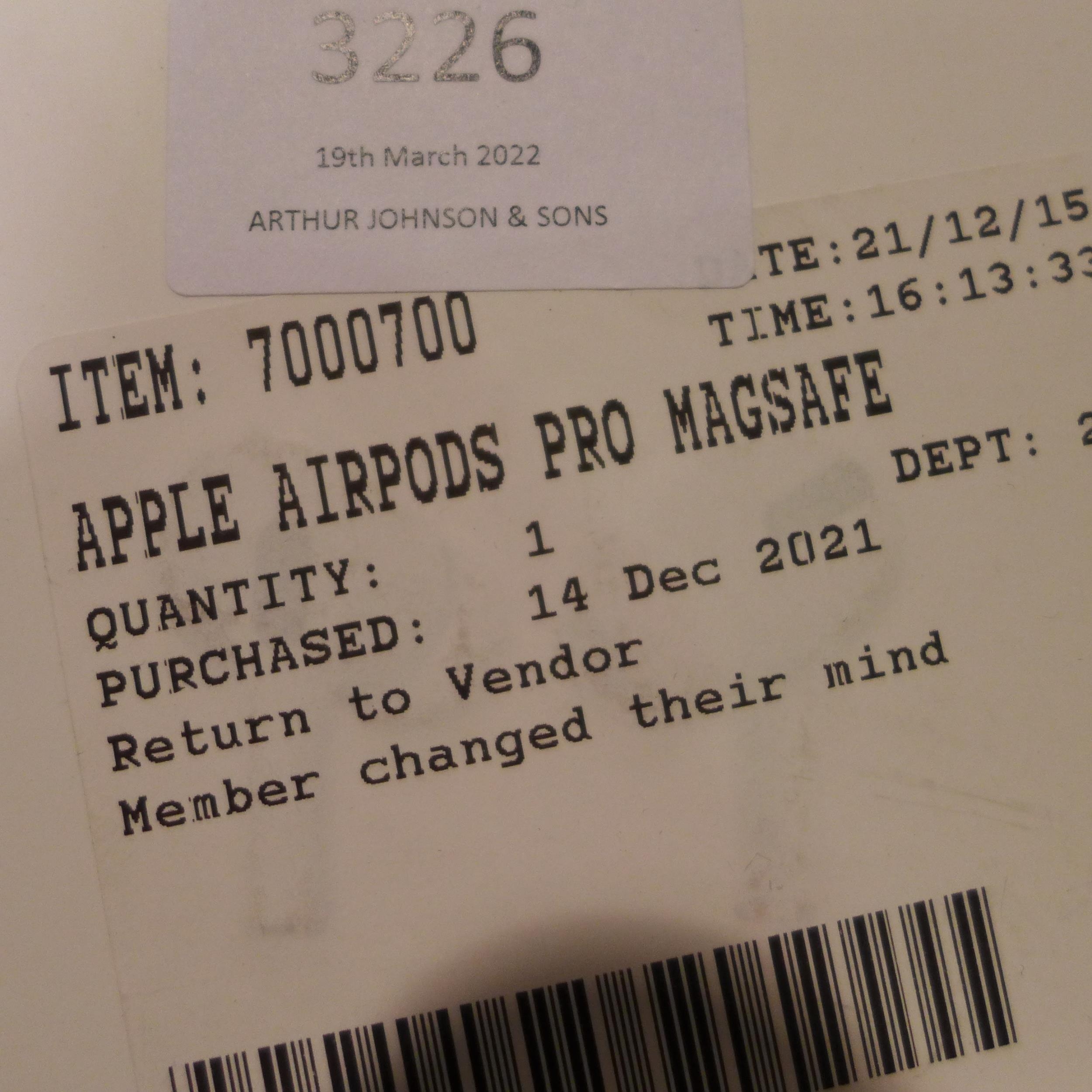 Apple Airpods Pro Magsafe (model:- MLWK3ZM/A), original RRP £164.99 + VAT (245-243) * This lot is subject to VAT