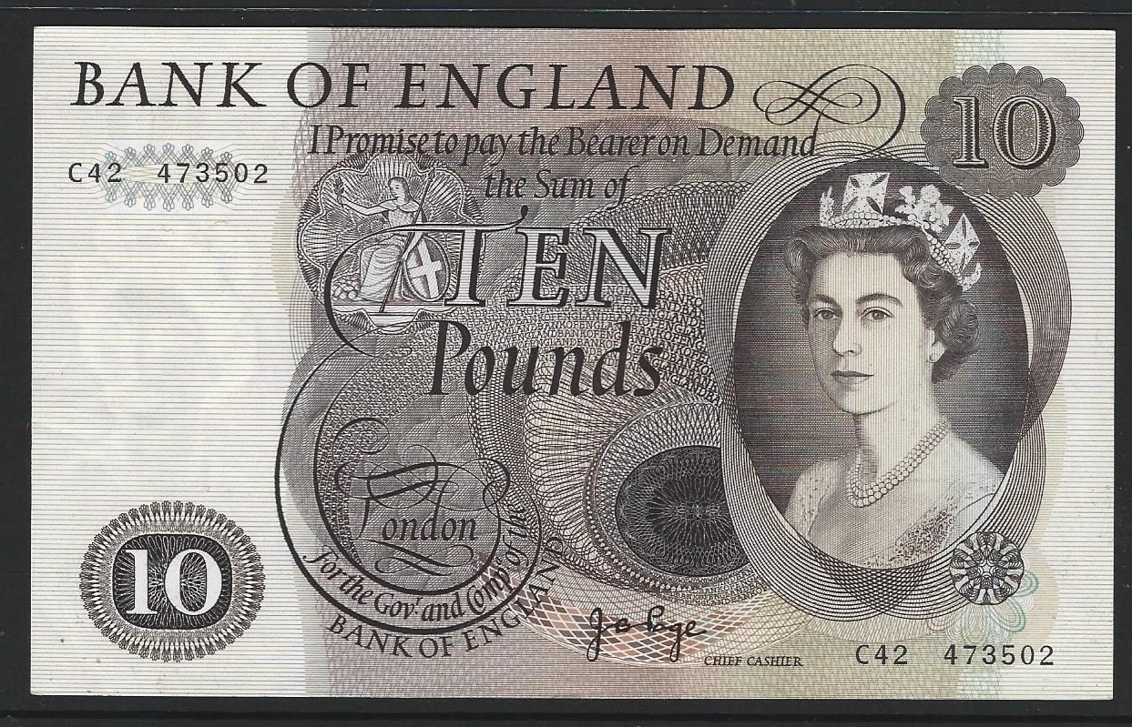 BANKNOTE. United Kingdom, Bank of England, 10 Pounds, ND(1971), sign. J.B. PAGE, Duggleby-B326 (BE155c), serial number C42 473502, EF