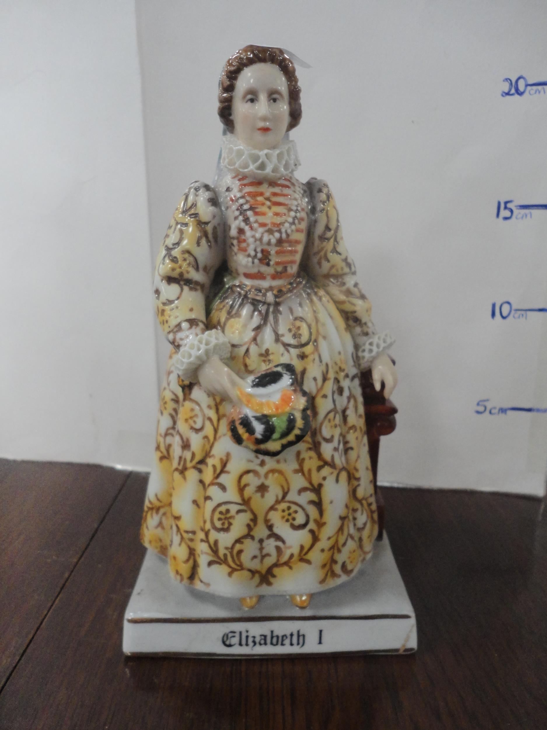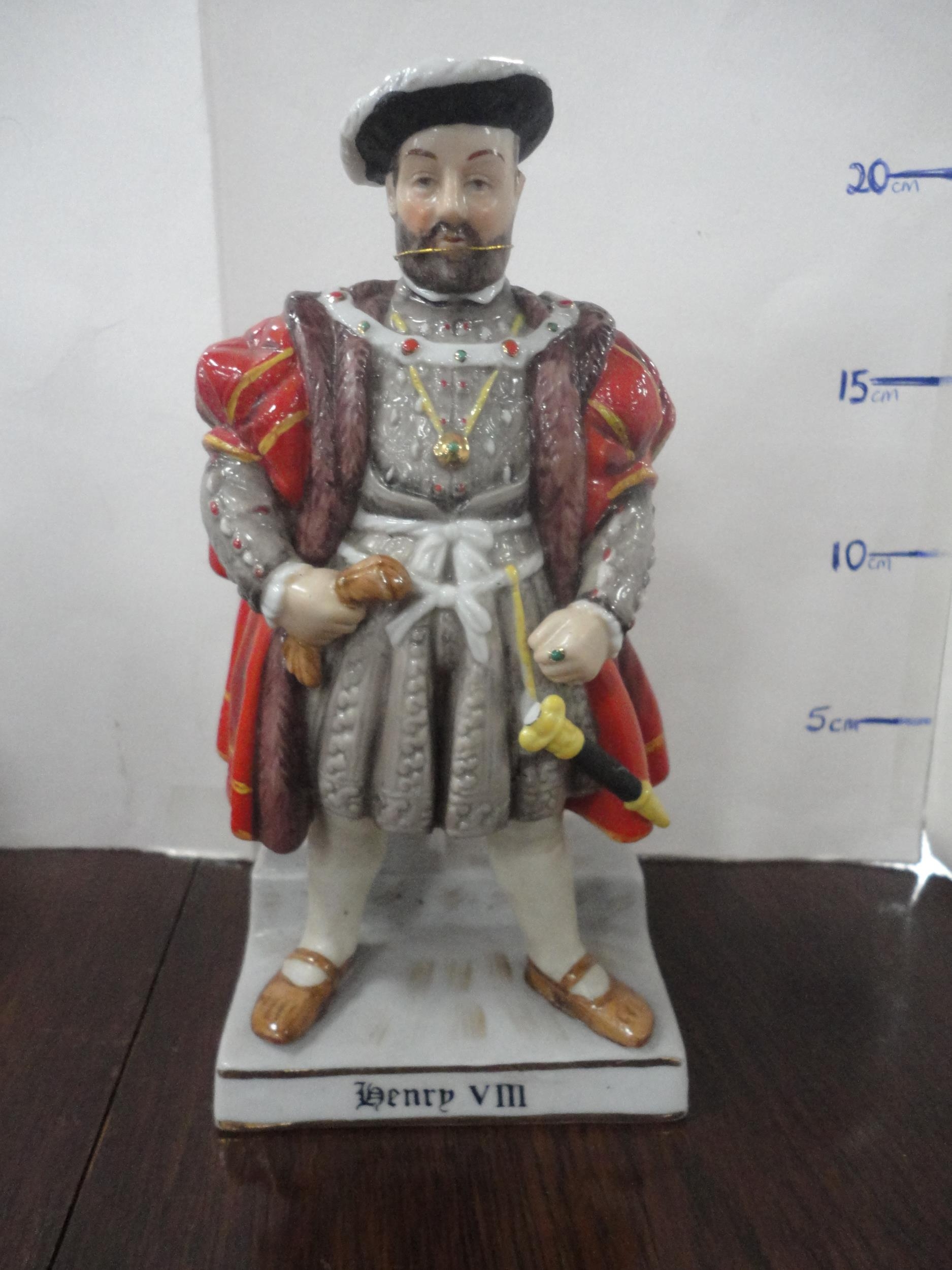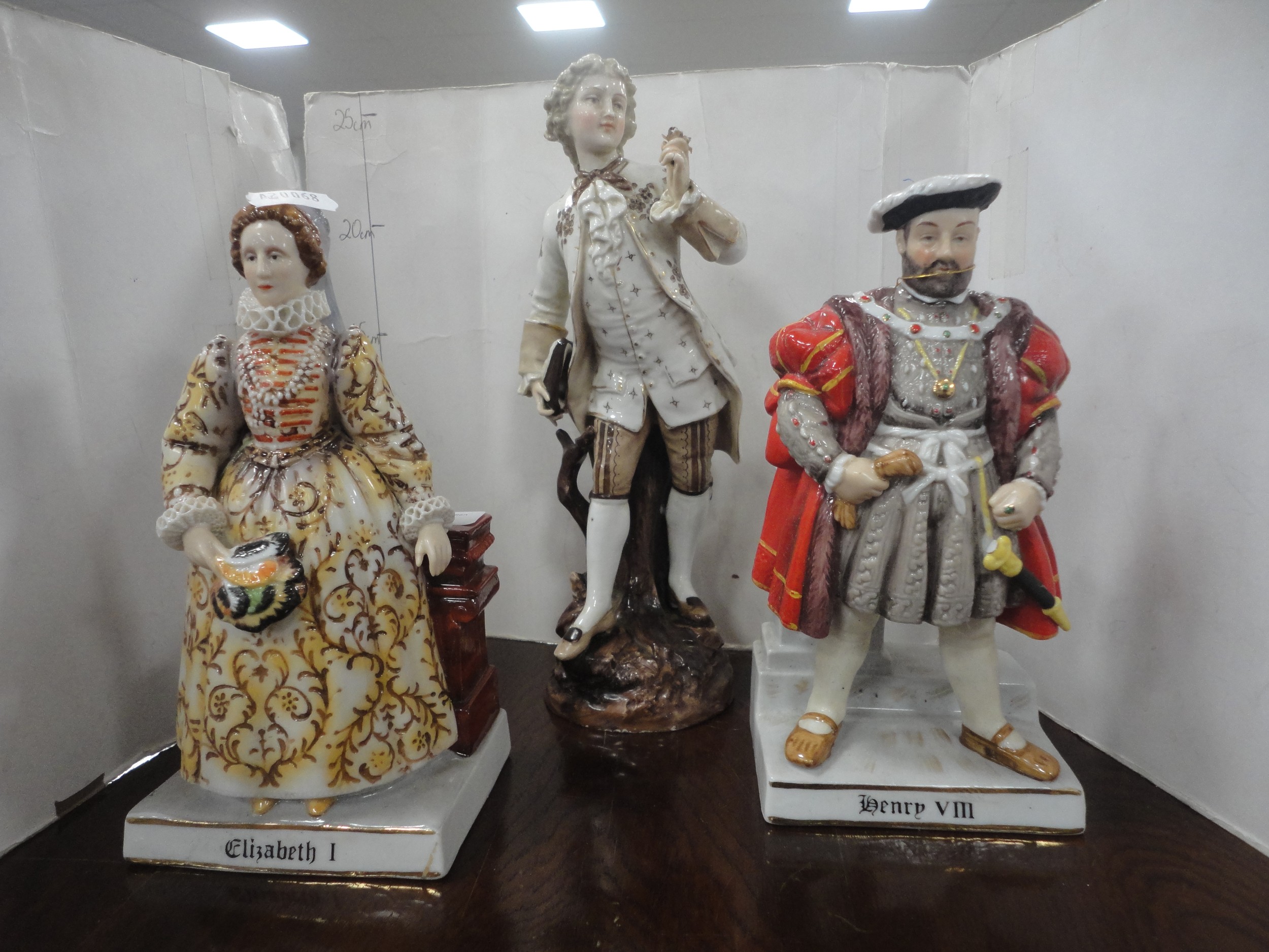 Porcelain figures to include a figure of a gentleman in the Georgian style, Henry VIII and Elizabeth I.