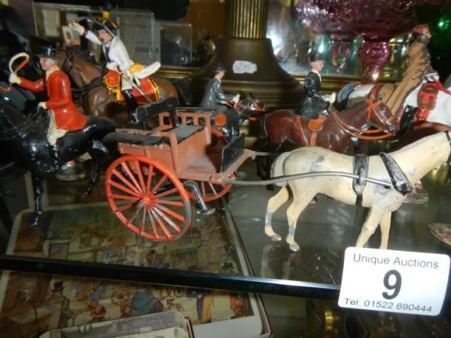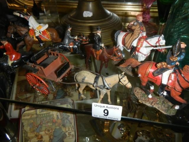 A quantity of model soldiers on horseback.