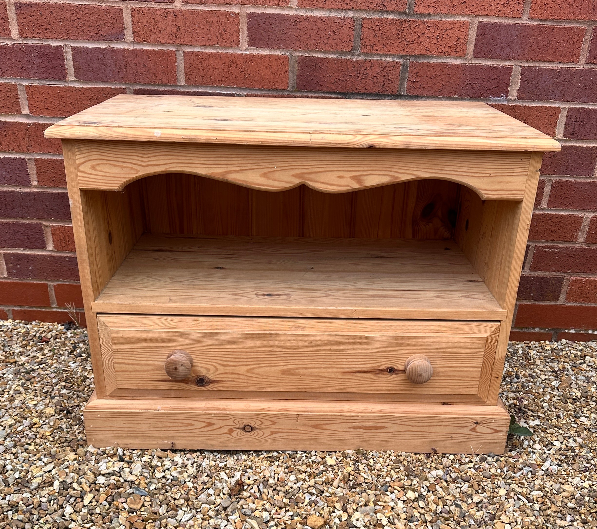 Pine TV Unit. With compartment to lower section. W76cm x D45cm x H56cm. BUYER TO COLLECT OR ARRANGE COURIER