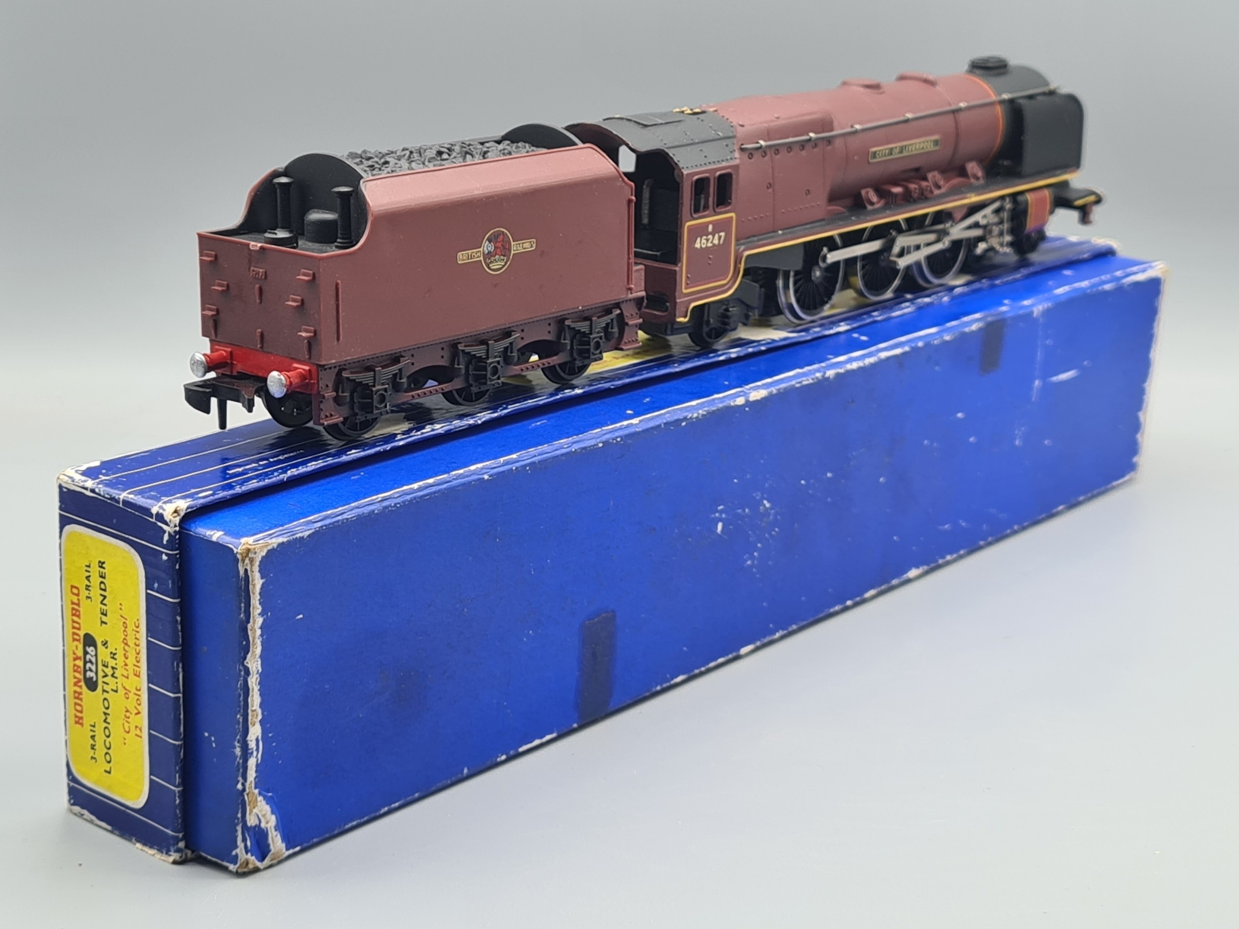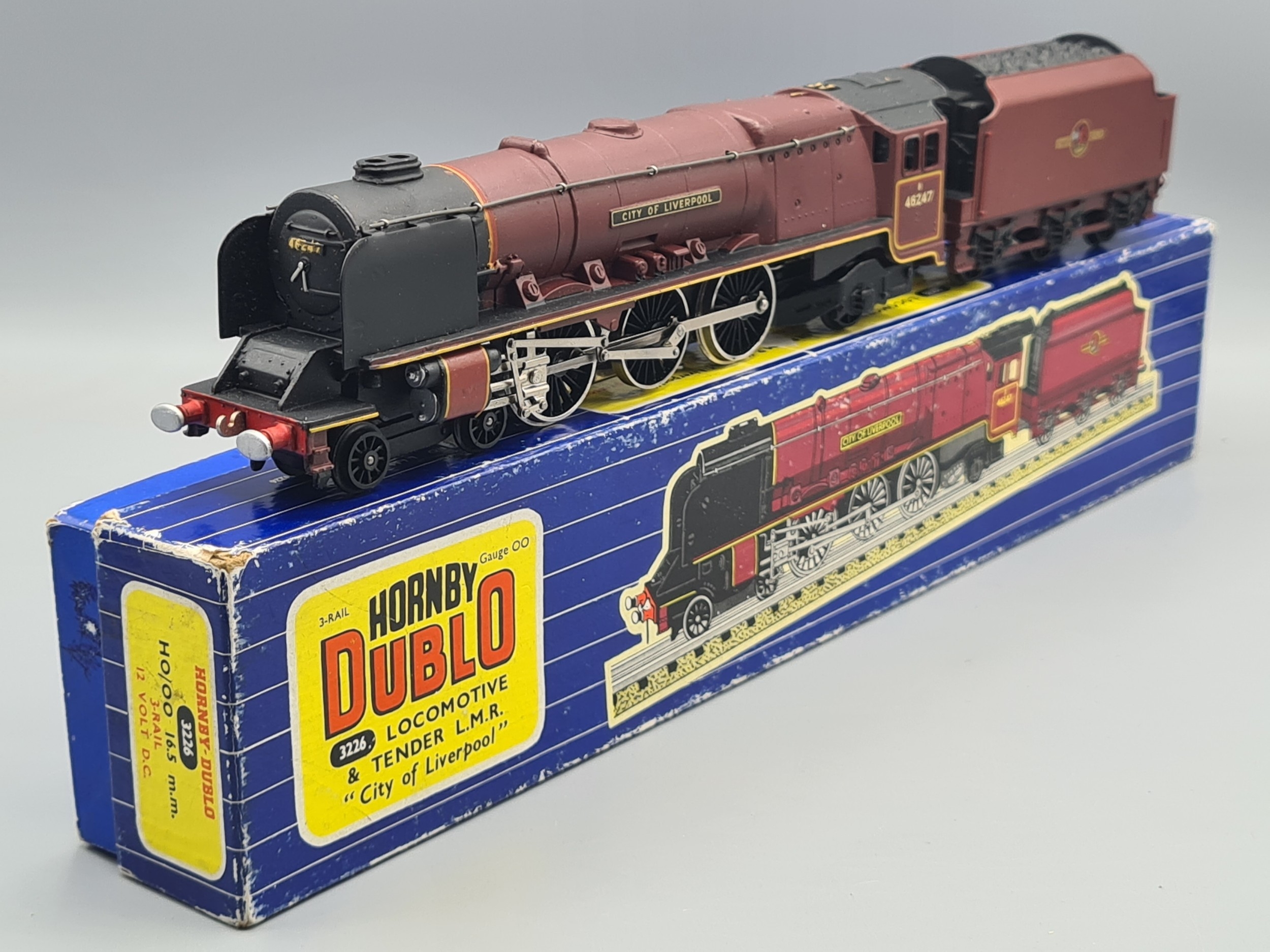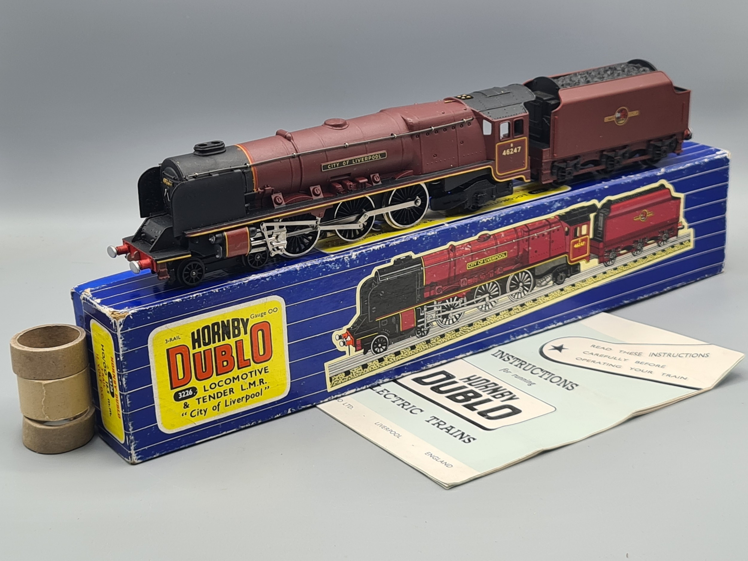 A boxed Hornby Dublo 3226 'City of Liverpool' Locomotive, Nr M, has been lightly run. Box VG, has some tape marks to sides, complete with instructions