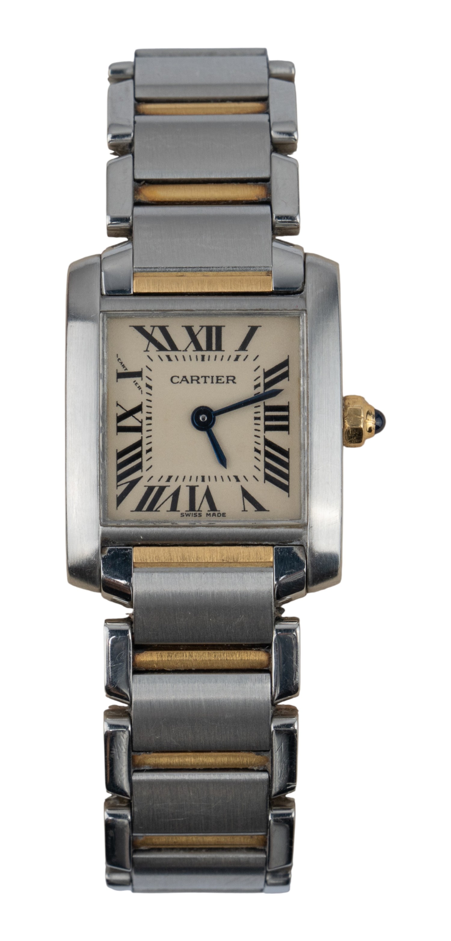 Cartier, A yellow and stainless steel Tank Française lady's wristwatch