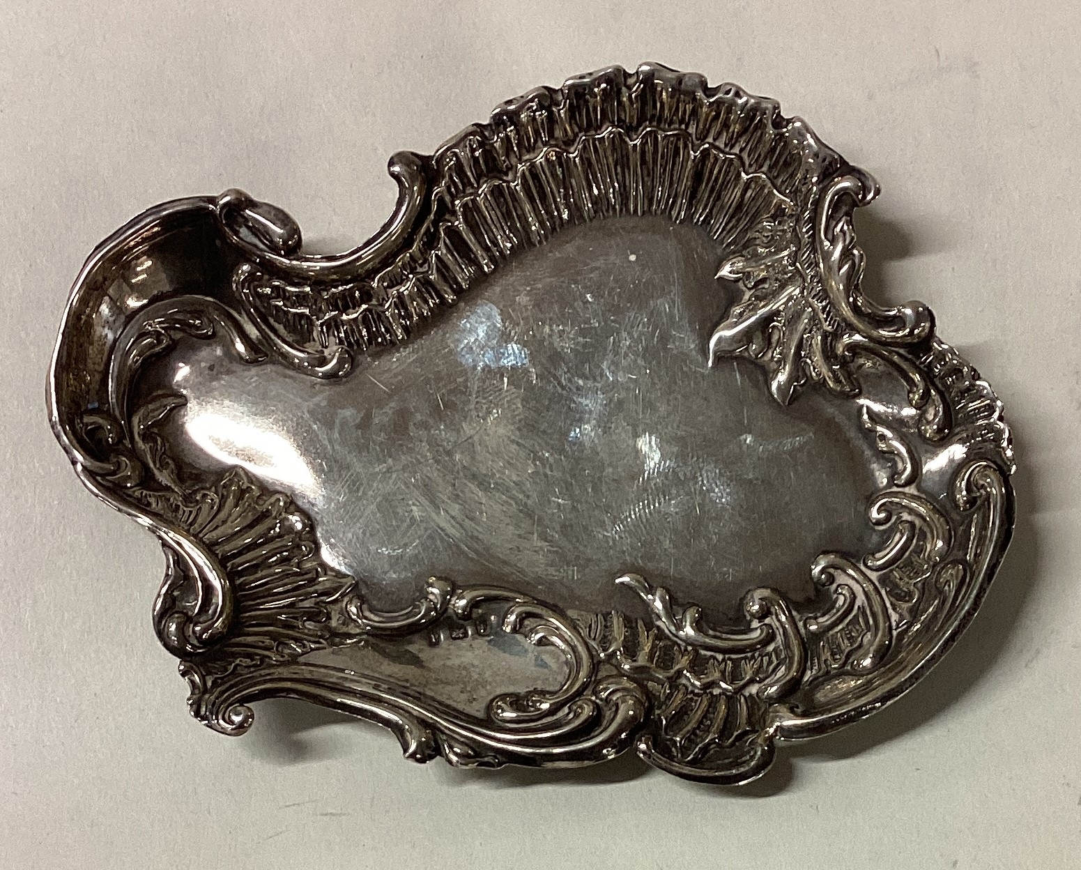 A silver chased dish. Birmingham 1903. Approx. 25 grams. Est. £30 - £50.