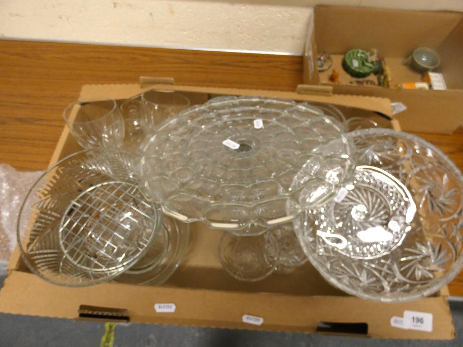 Large box of cut glassware to include plate stands, wine glasses etc.