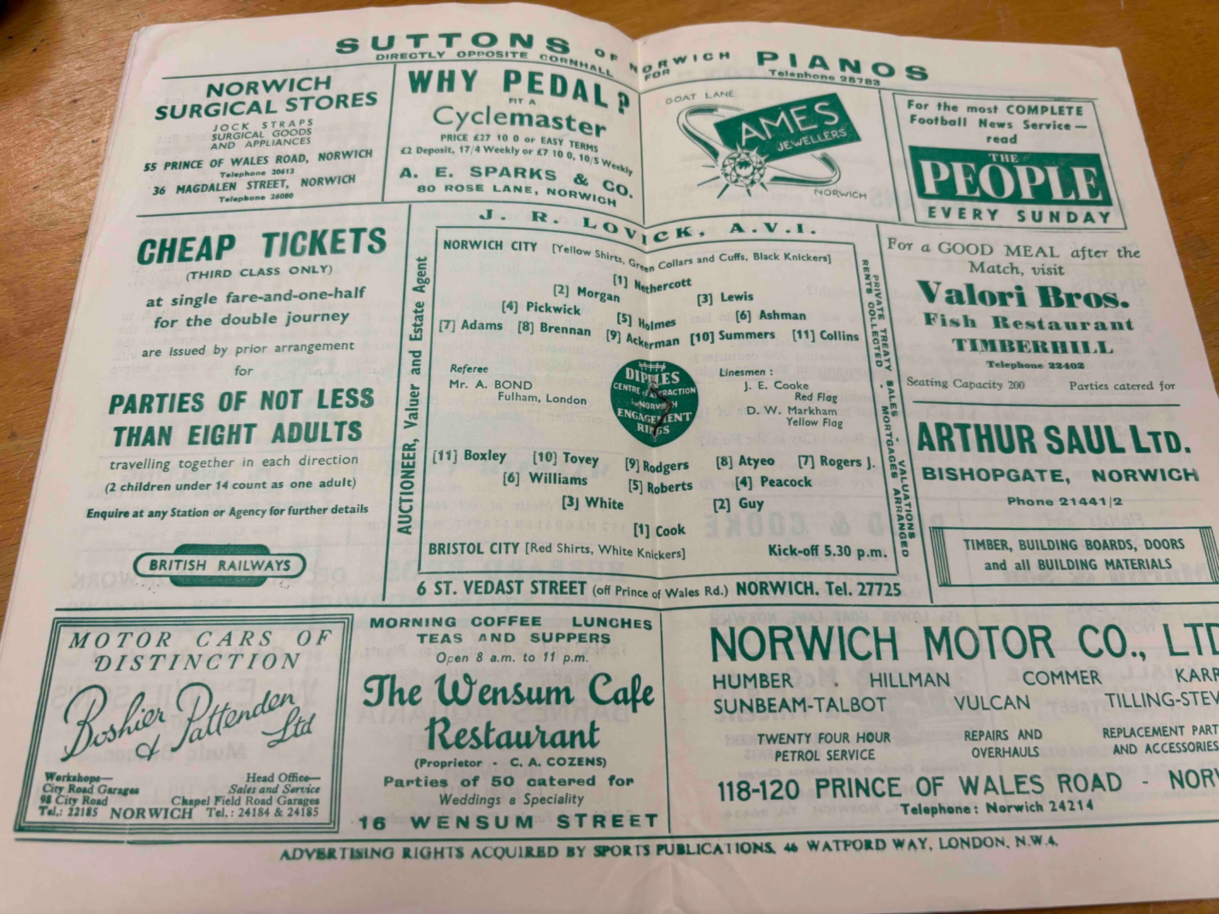 1953/54 Norwich City v Bristol City. Good condition.