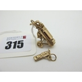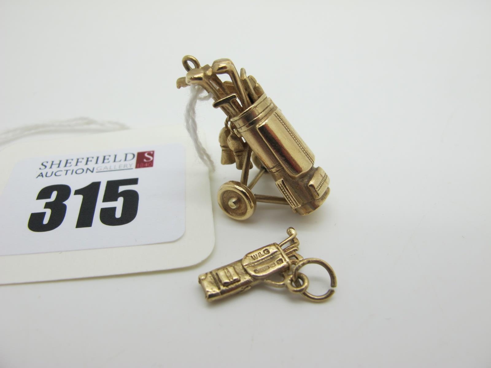A 9ct Gold Novelty Golf Cart Pendant / Charm, and another similar (total weight 7grams). (2)