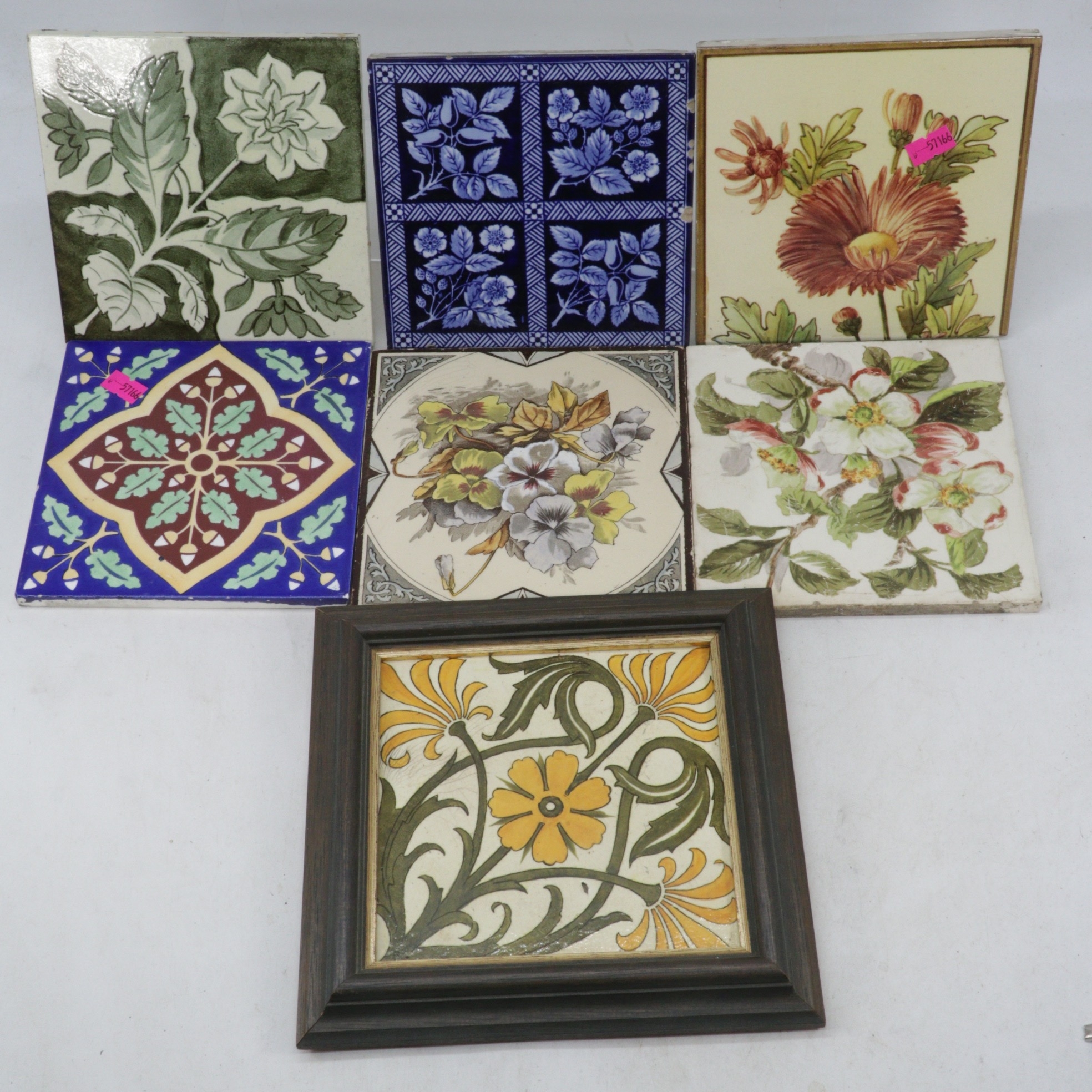 Selection of antique ceramic tiles including Doulton Lambeth