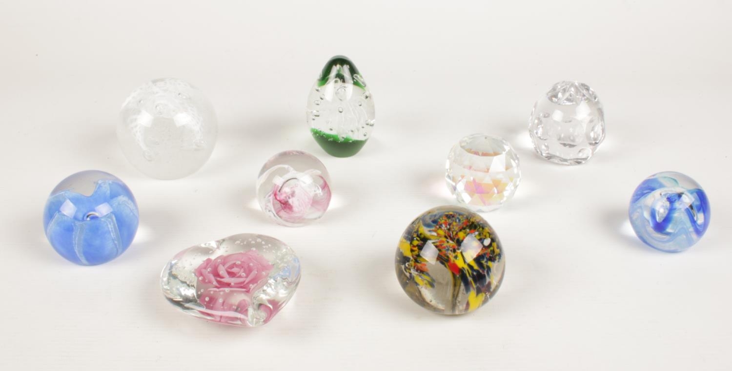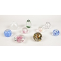 A group of glass paper weights.