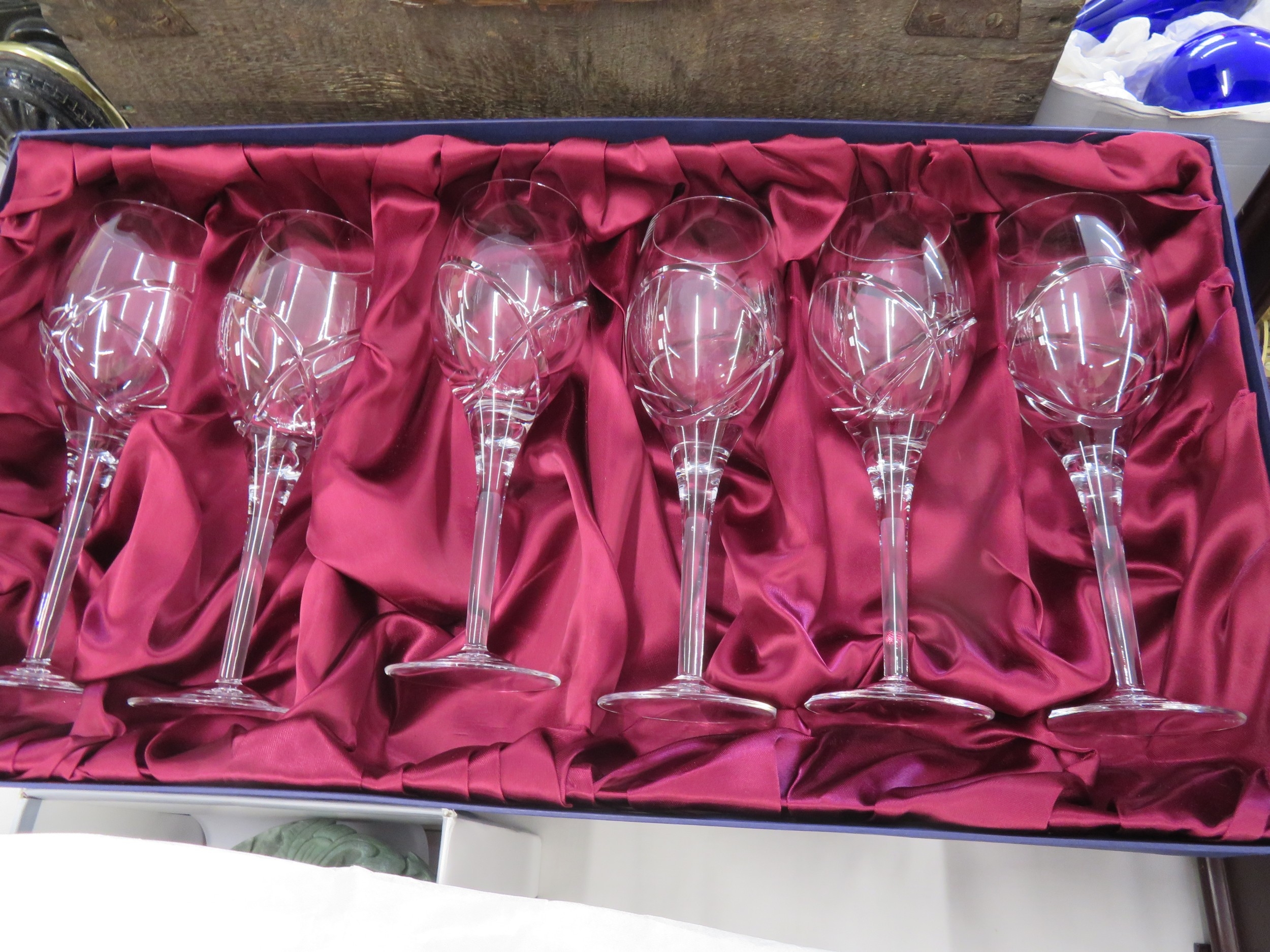 Set of Twelve Tutbury cut wine glasses - Two boxes, six red, six white