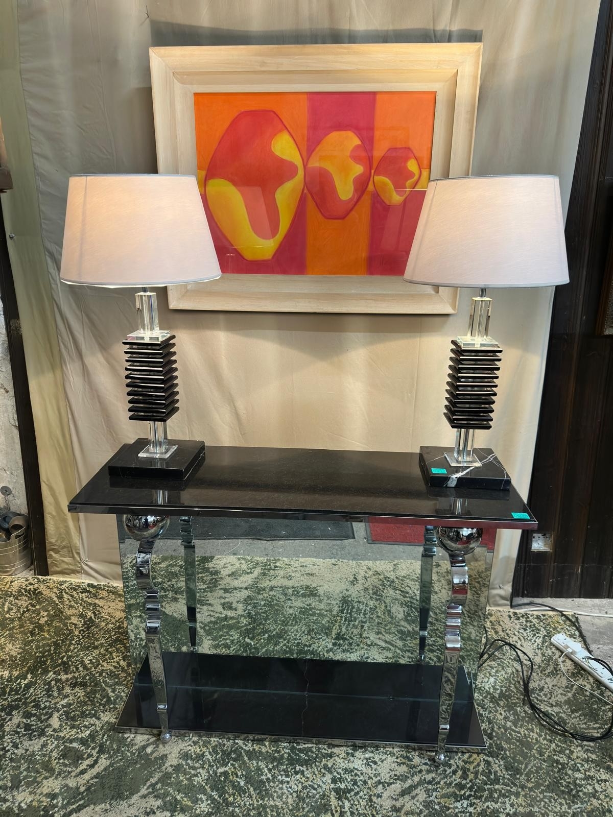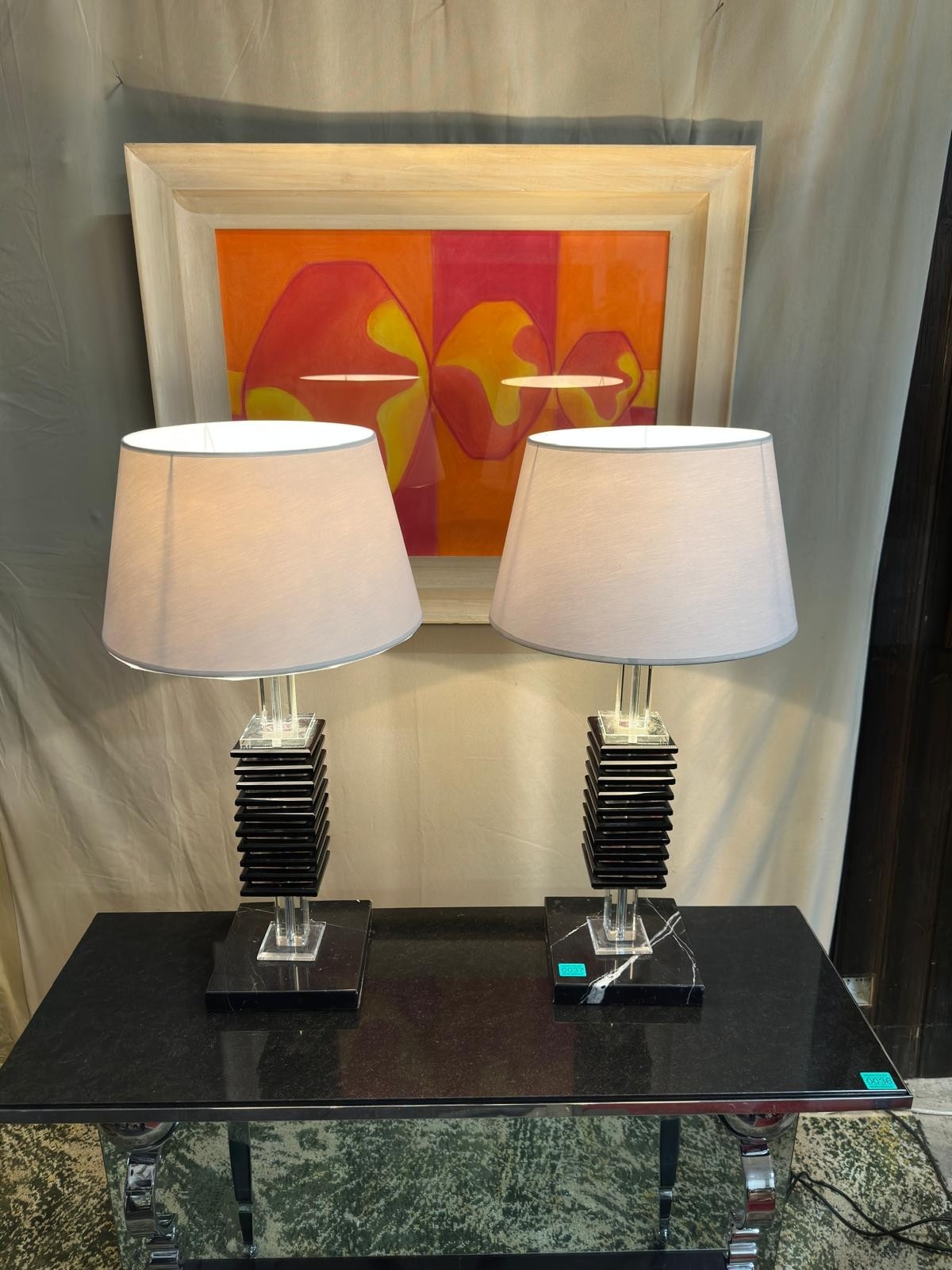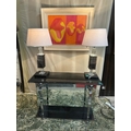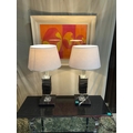 2 Glass and Marble Table Lamps with Marble Bases