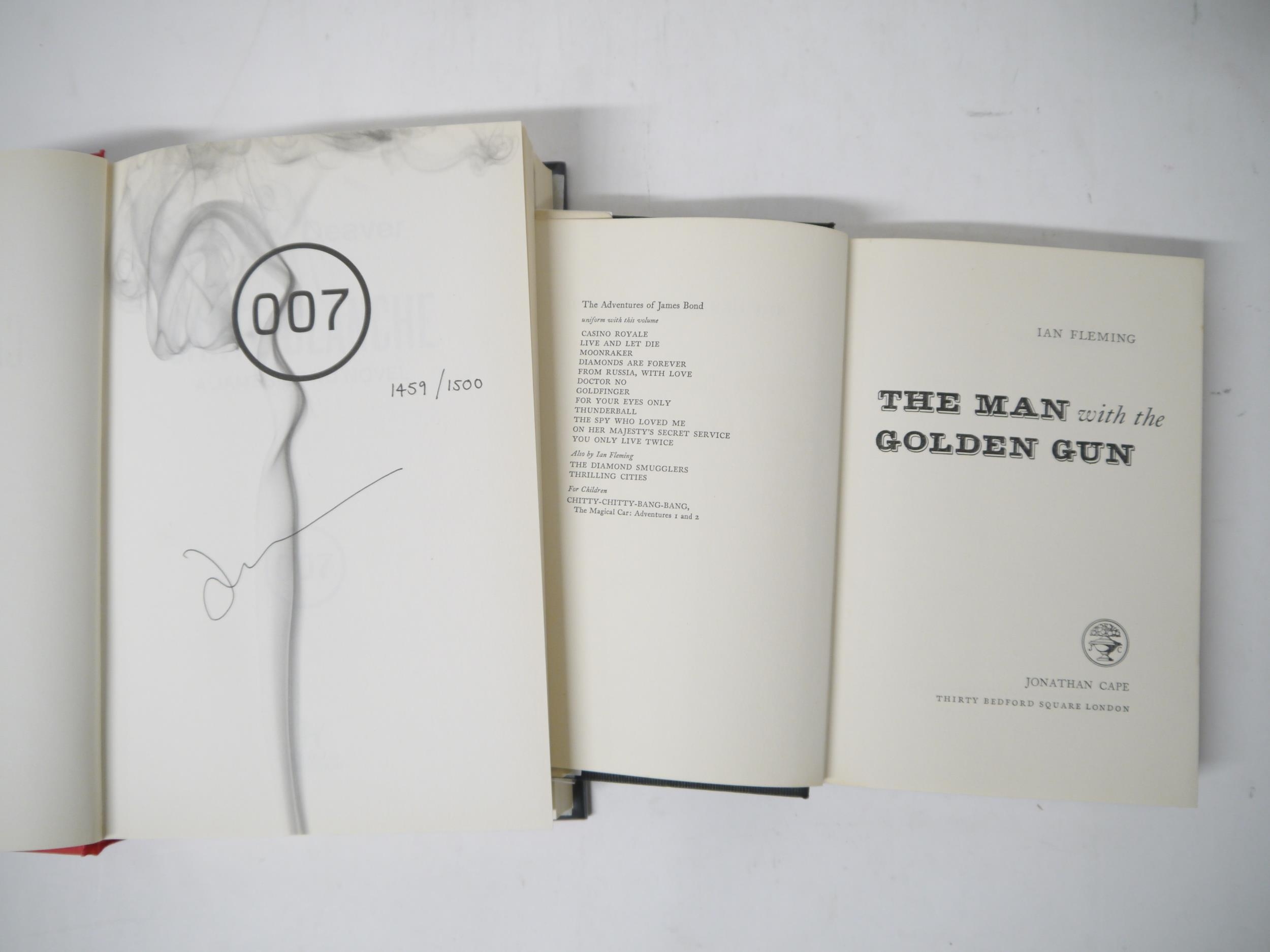 Ian Fleming: 'The Man with the Golden Gun', London, Jonathan Cape, 1965, 1st edition, original black cloth, spine lettered in gilt, patterned green end papers, dust wrapper (by Richard Chopping, 18s price intact), together with Jeffery Deaver: 'Carte Blanche', L, Hodder & Stoughton, 2011, 1st edition, limited edition, numbered 1459 of 1500 copies and signed, original boards, dust wrapper (2)
