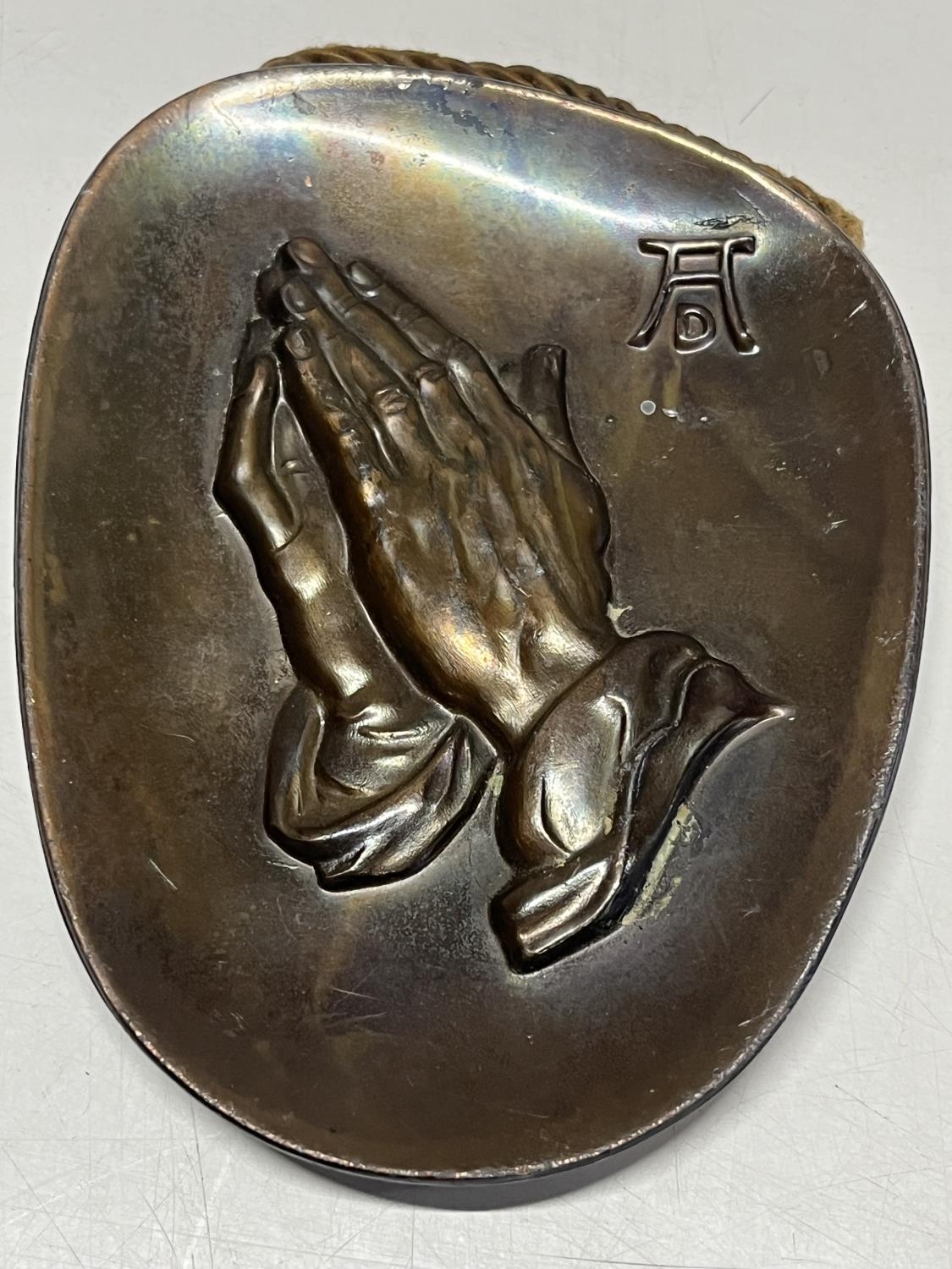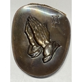 A small After Albrecht Durer bronze plaque with praying hands, signed