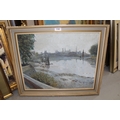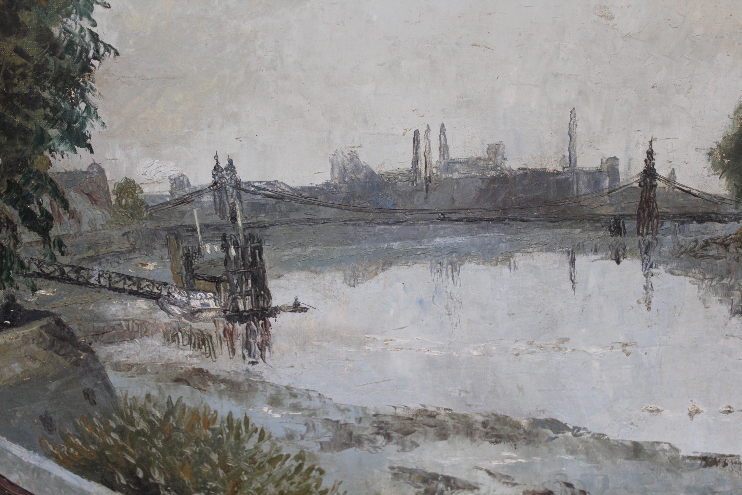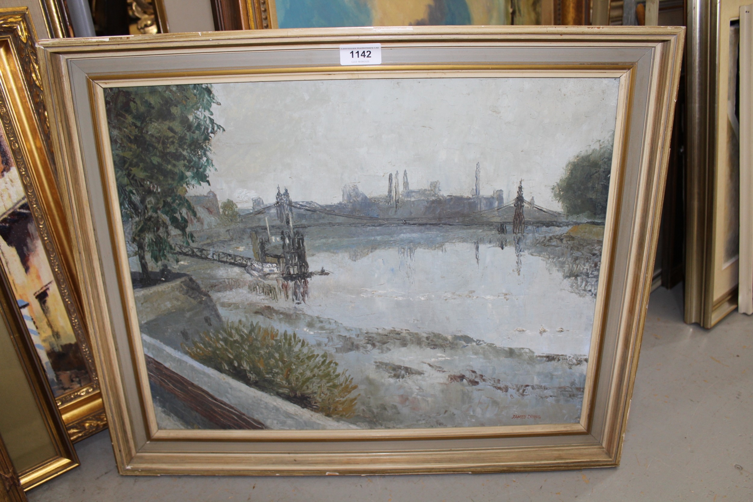 James Dring (New English Art Club), oil on canvas, Thames scene with bridge, signed, 40 x 50cm