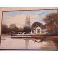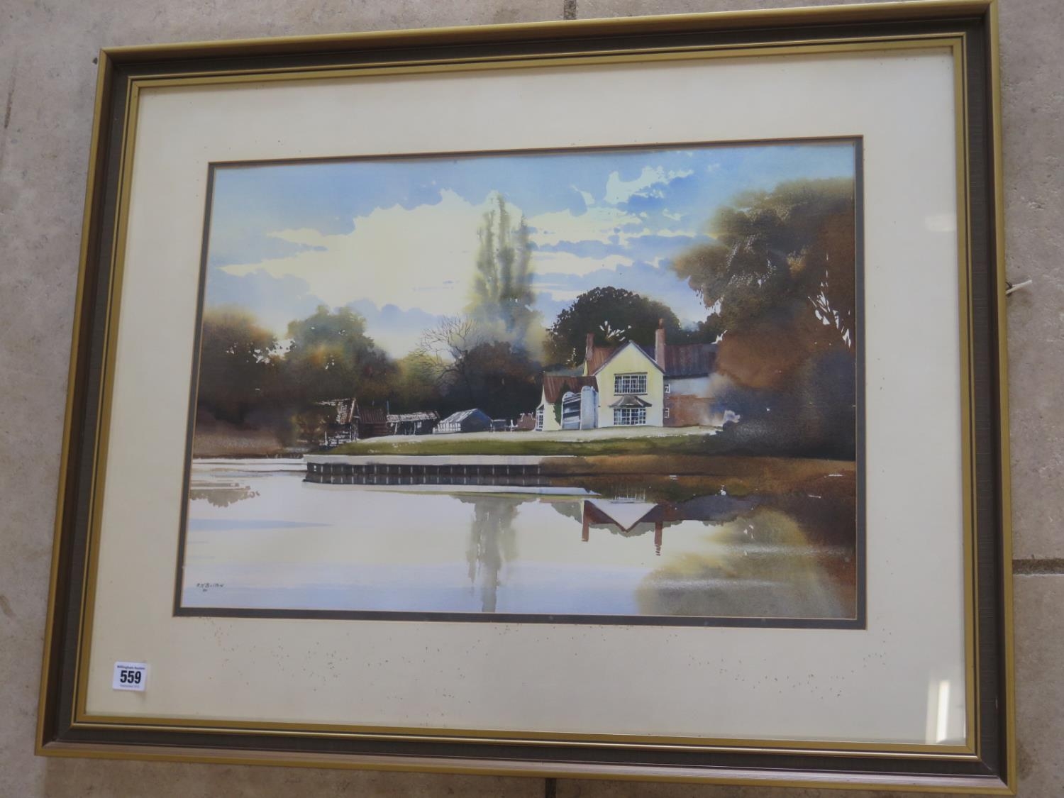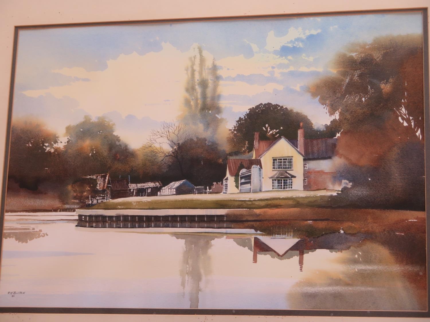 A RM Bolton watercolour - Hemingford Grey Mill House - 38cm x 54cm - frame size 62cm x 77cm - dated 81, good condition, some fly under glass